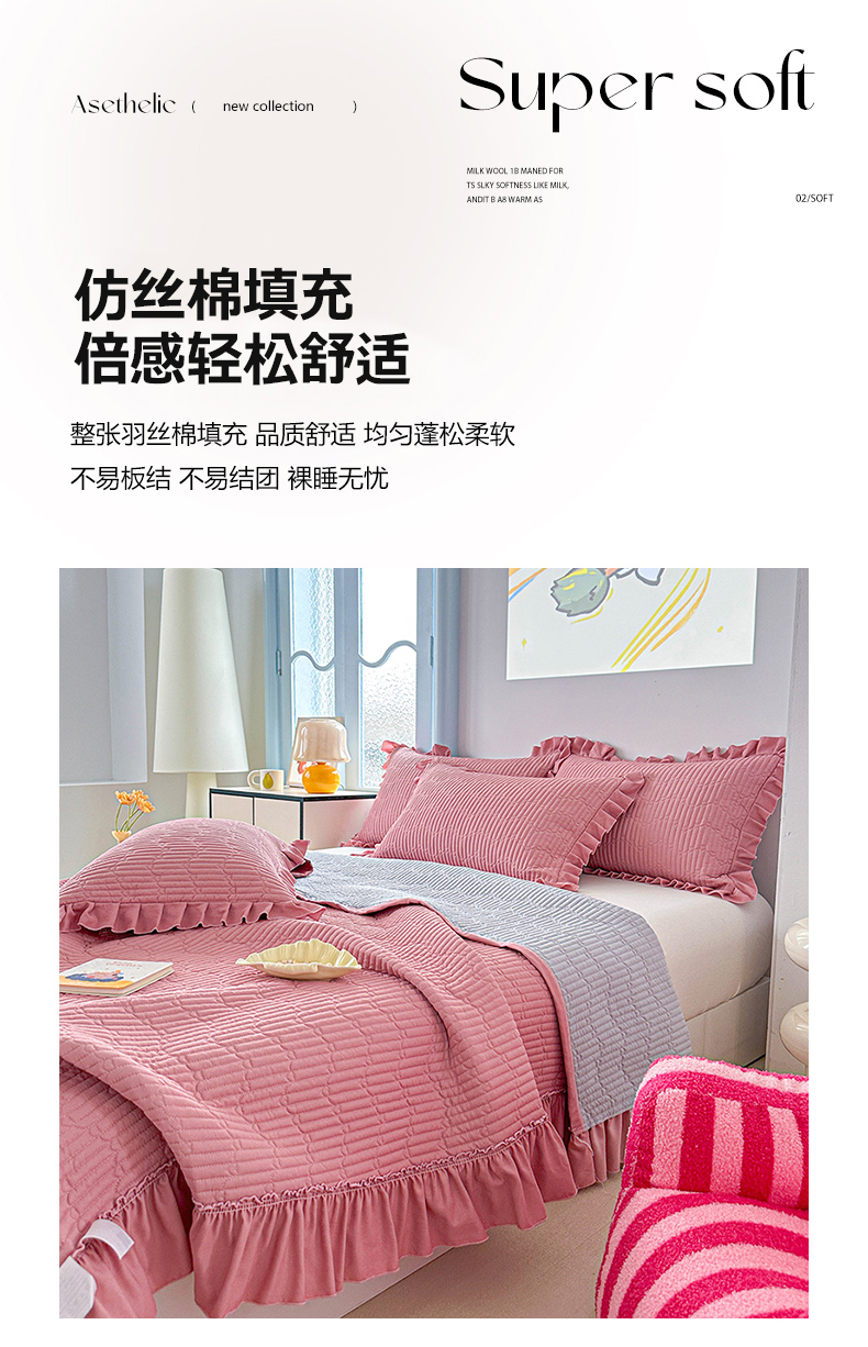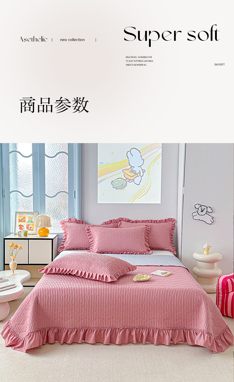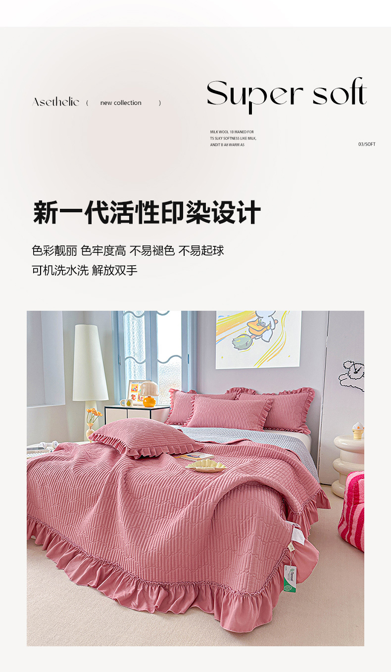 (总)源舜家纺 2025新款牛奶婴儿绒米粒绣韩系花边床盖三件套,婴儿草绿,婴儿豆沙,婴儿粉,婴儿灰,婴儿灰蓝,婴儿蓝,婴儿深绿,婴儿紫