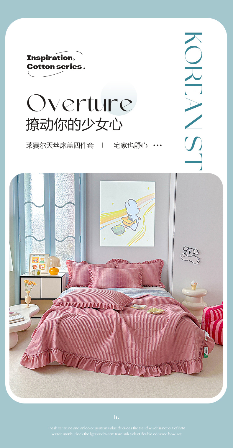 源舜家纺 2025新款莱赛尔床盖三件套 豆沙