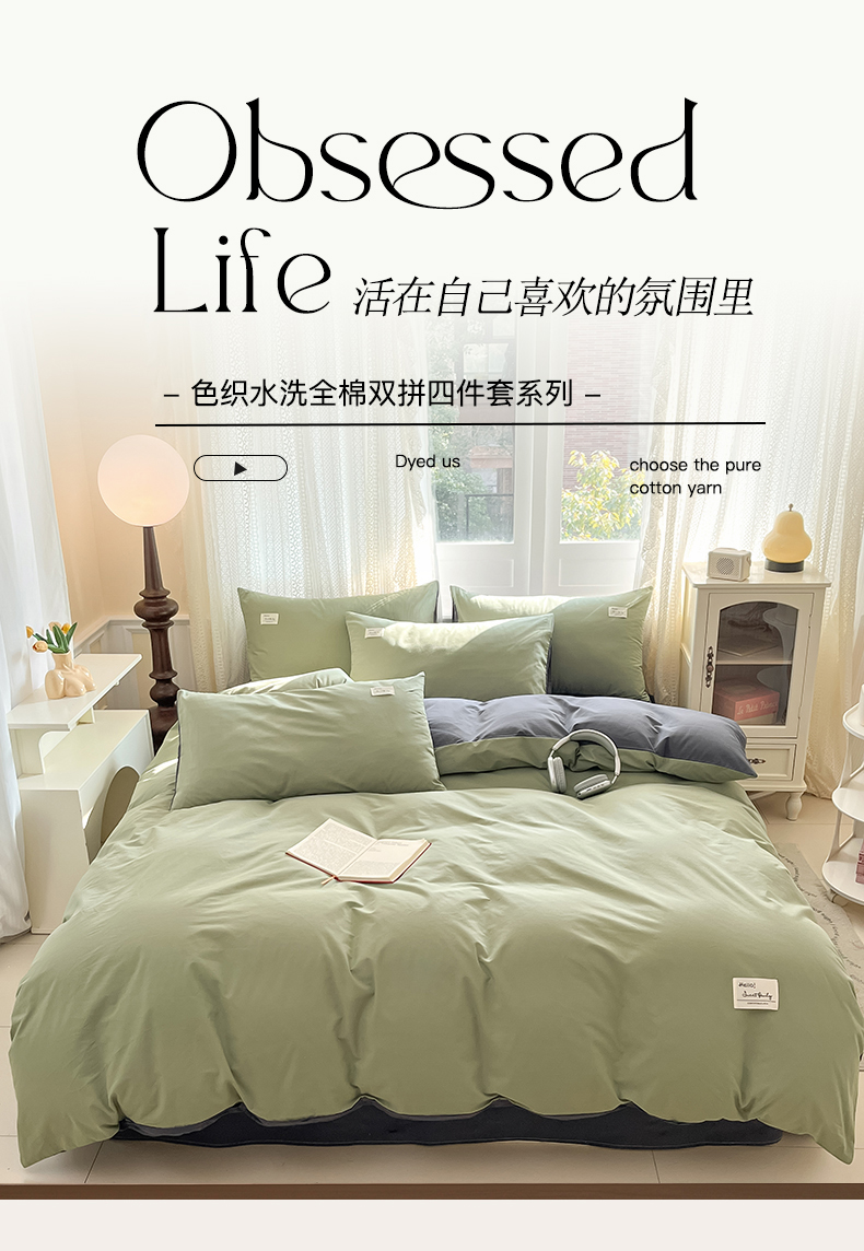 当前位置: 91家纺网 > 商品网购 > 床品套件 > 四件套 > 水洗棉四件套 > 寐居家纺 2025新款色织水洗棉套件 橄榄绿+深灰