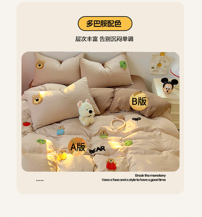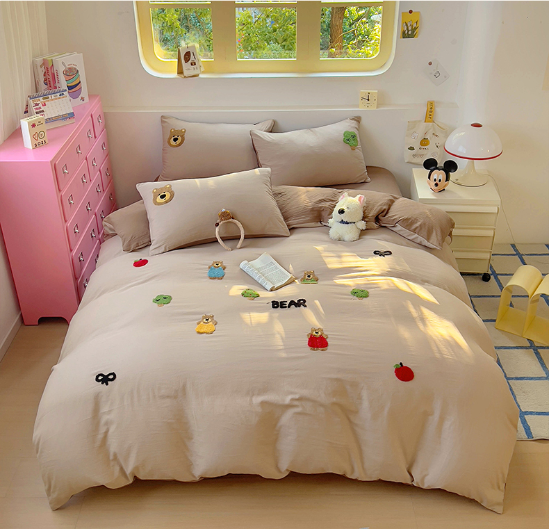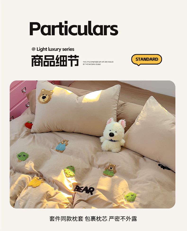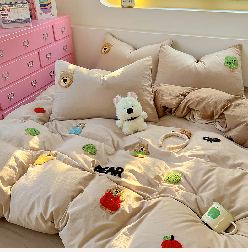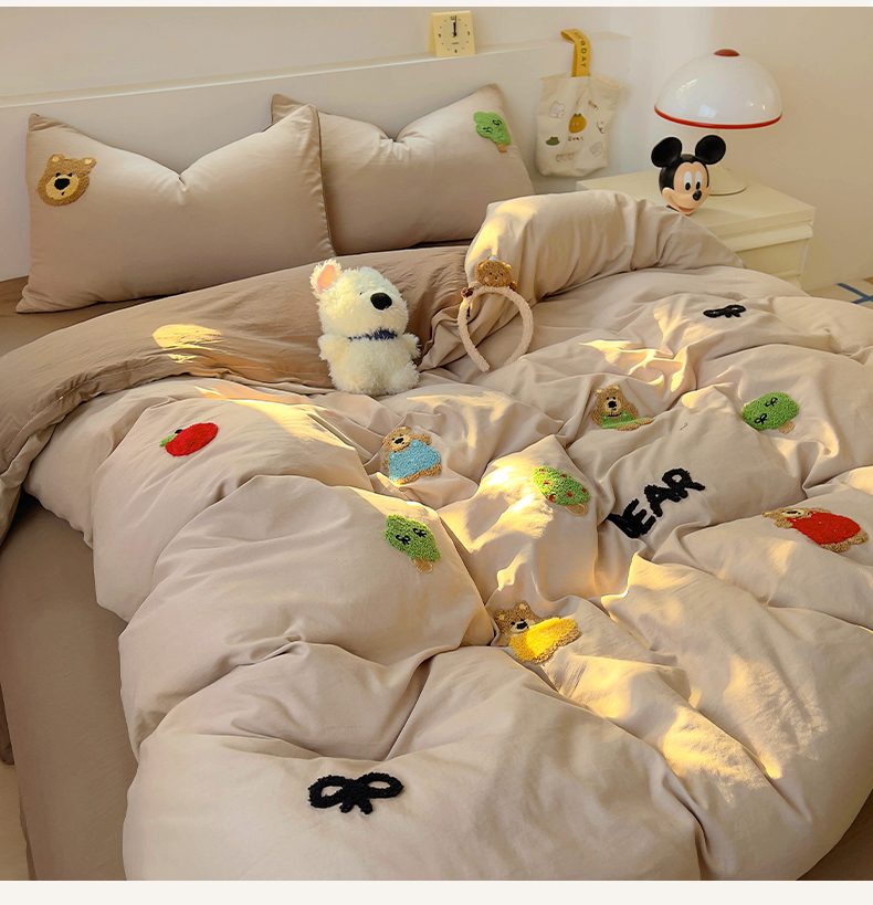 当前位置: 91家纺网 > 商品网购 > 床品套件 > 四件套 > 化纤普通四件套 > 易辰美 2025新款超柔水洗棉毛巾绣四件套 趣味熊(奶杏+卡其)
