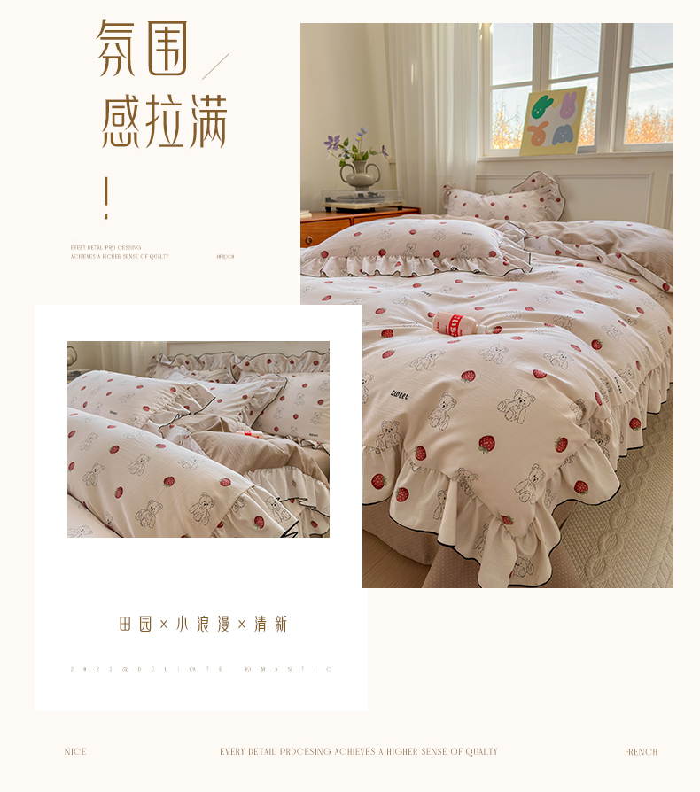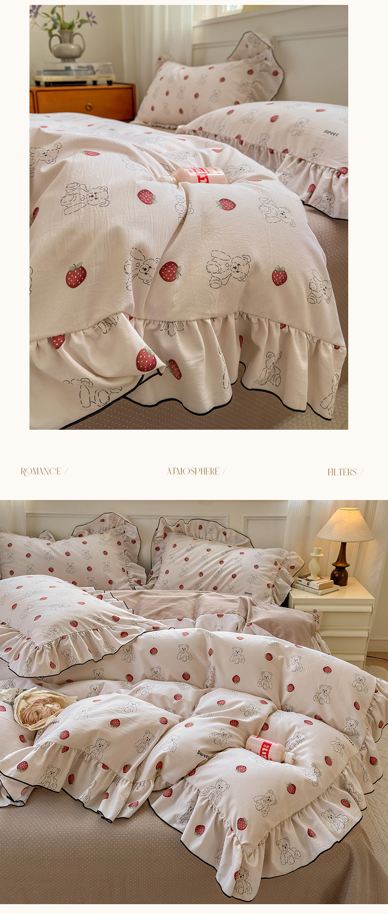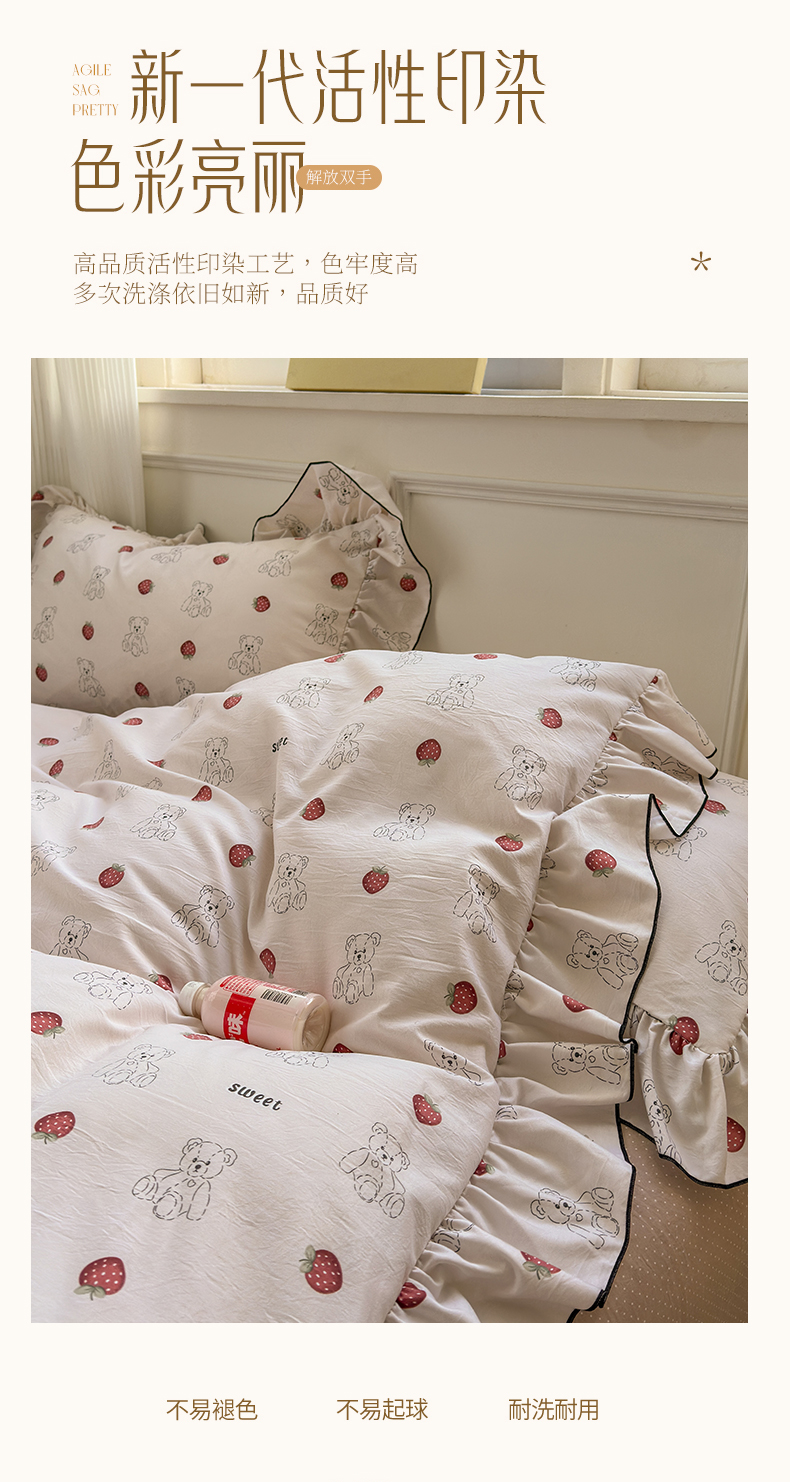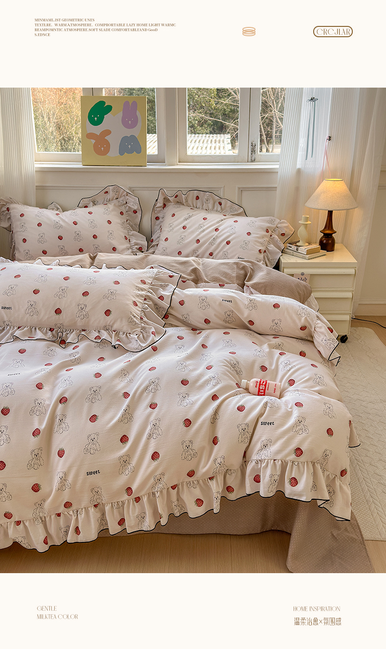 当前位置: 91家纺网 > 商品网购 > 床品套件 > 四件套 > 其它四件套 > 寐居家纺 2025新款韩版舒柔绵四件套 花边款-莓莓熊