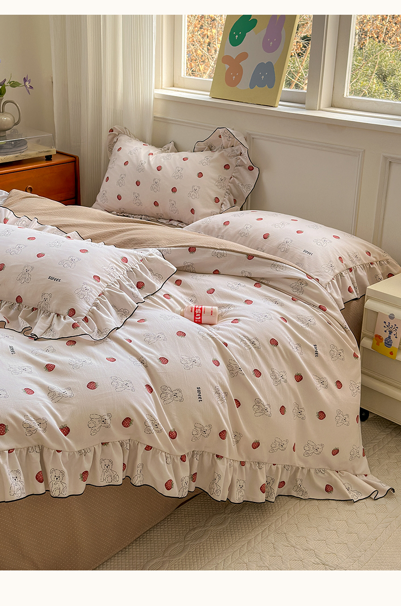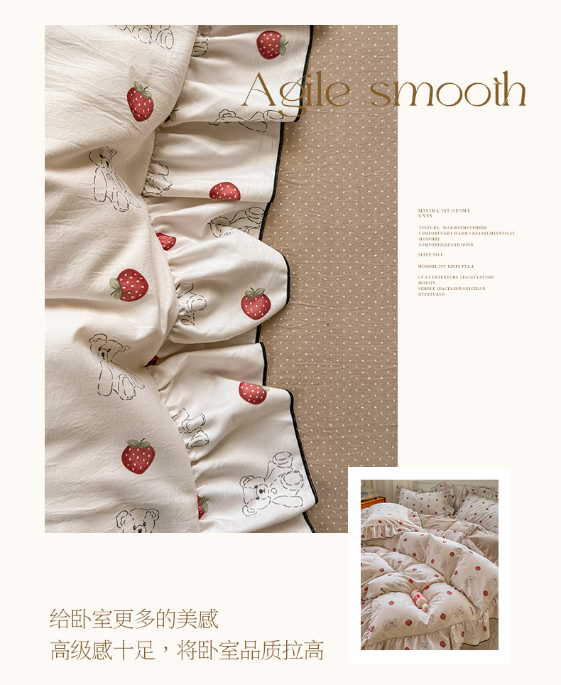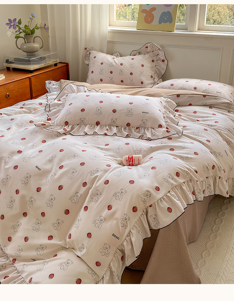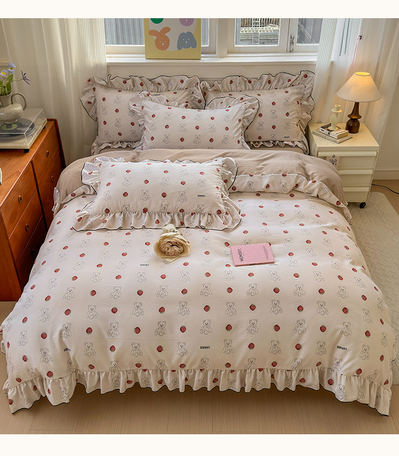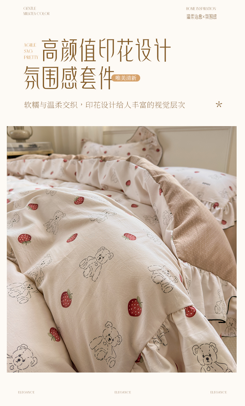 当前位置: 91家纺网 > 商品网购 > 床品套件 > 四件套 > 其它四件套 > 寐居家纺 2025新款韩版舒柔绵四件套 花边款-莓莓熊