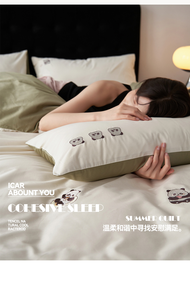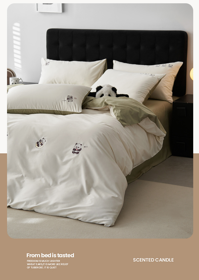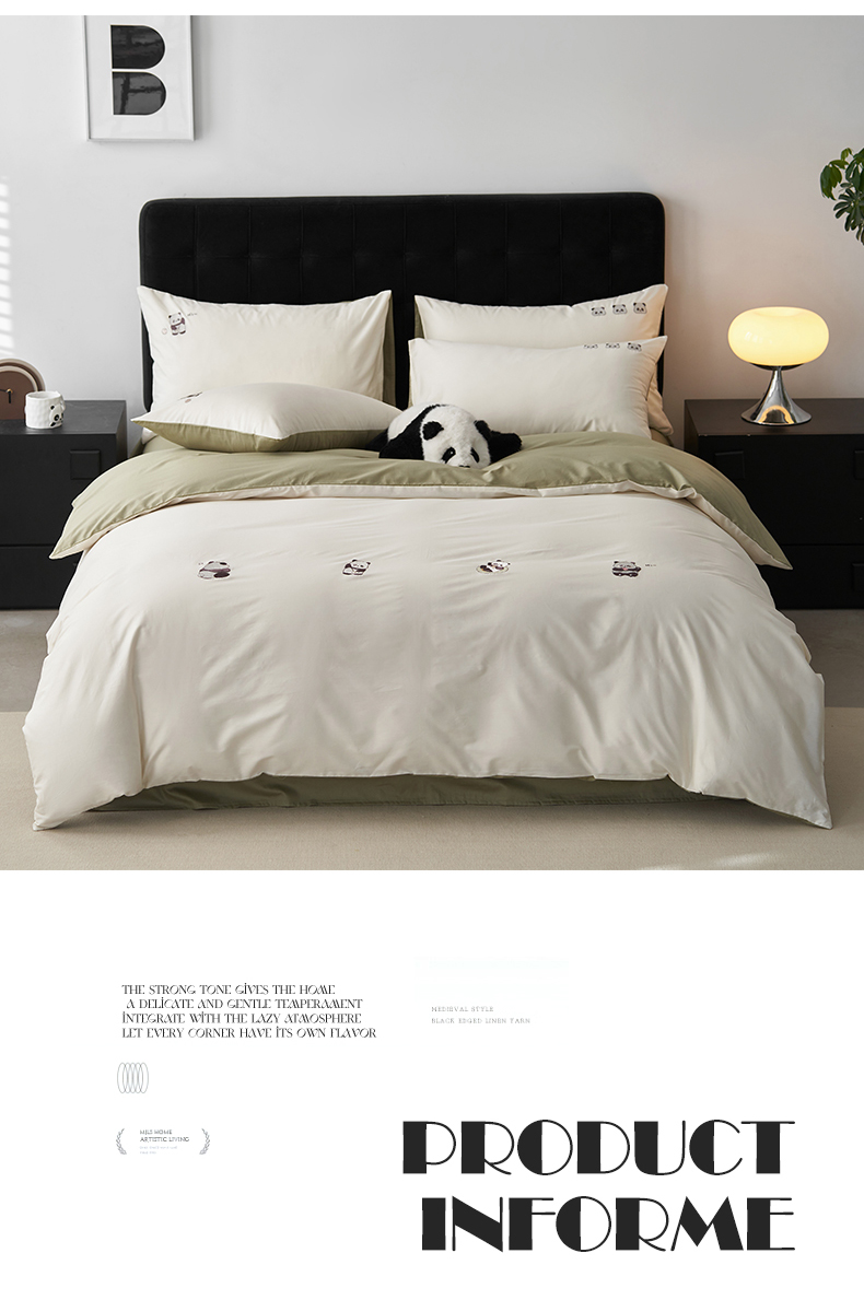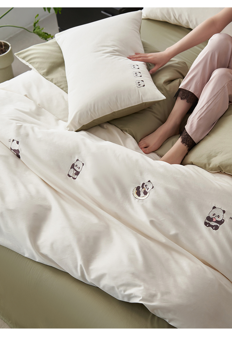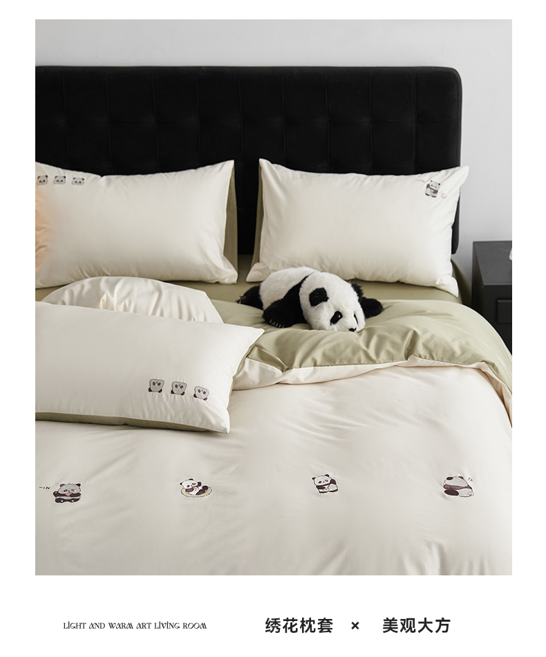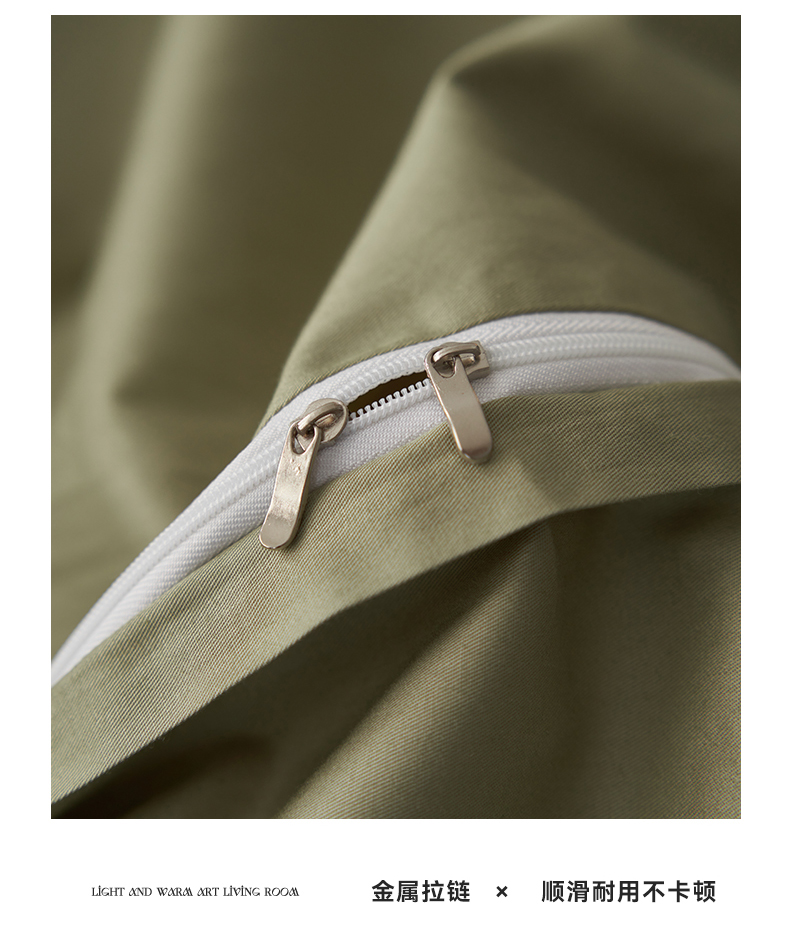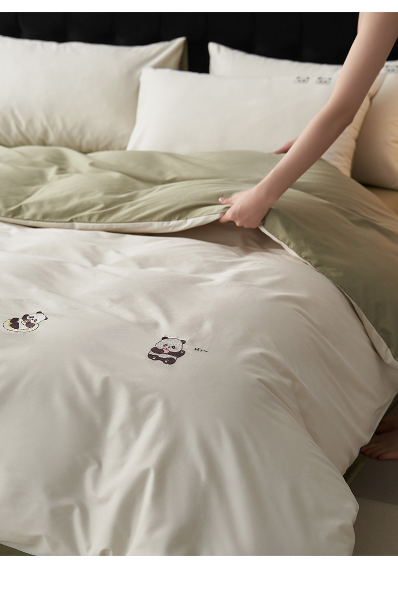 鼎飞家纺 2025新款全棉纯色双拼套件 奶白浅绿