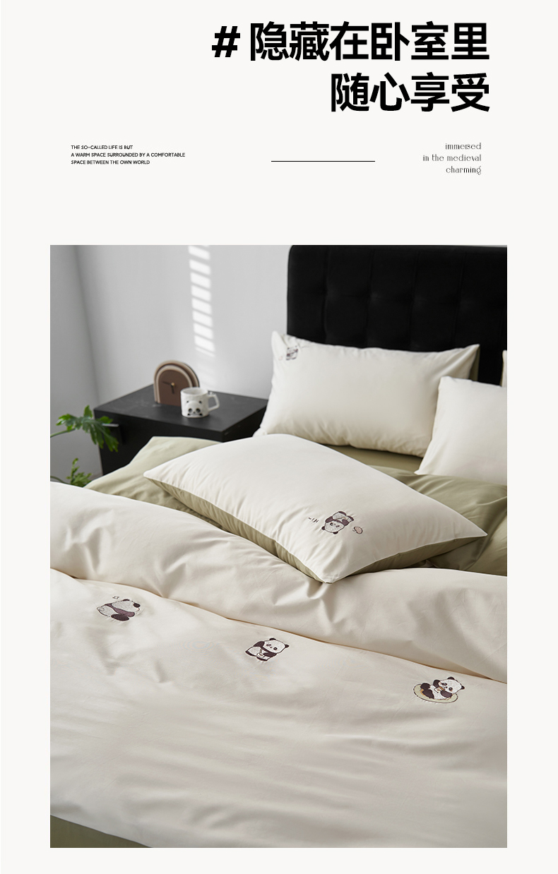 商品名称:鼎飞家纺 2025新款全棉纯色双拼套件 奶白浅绿