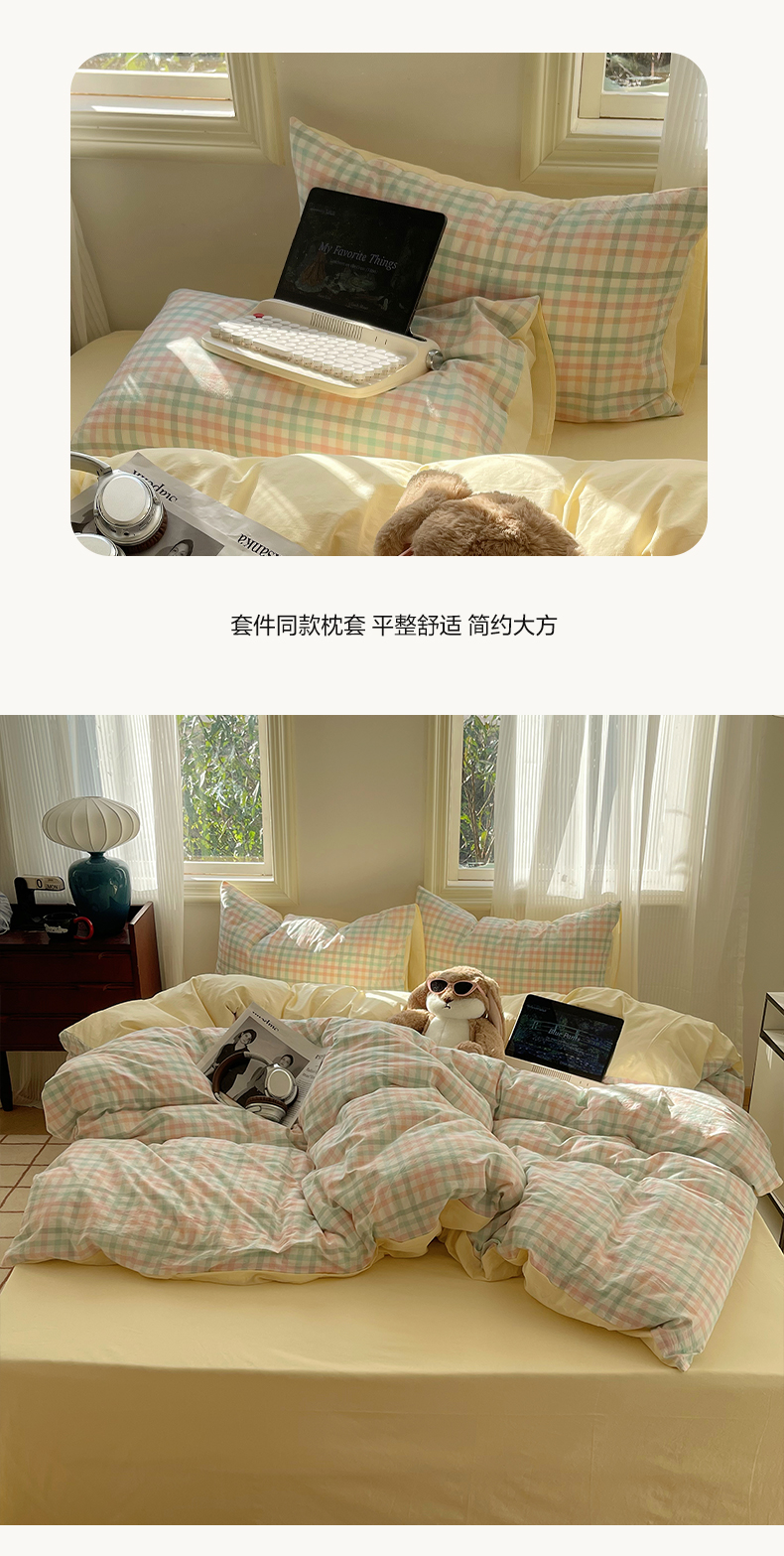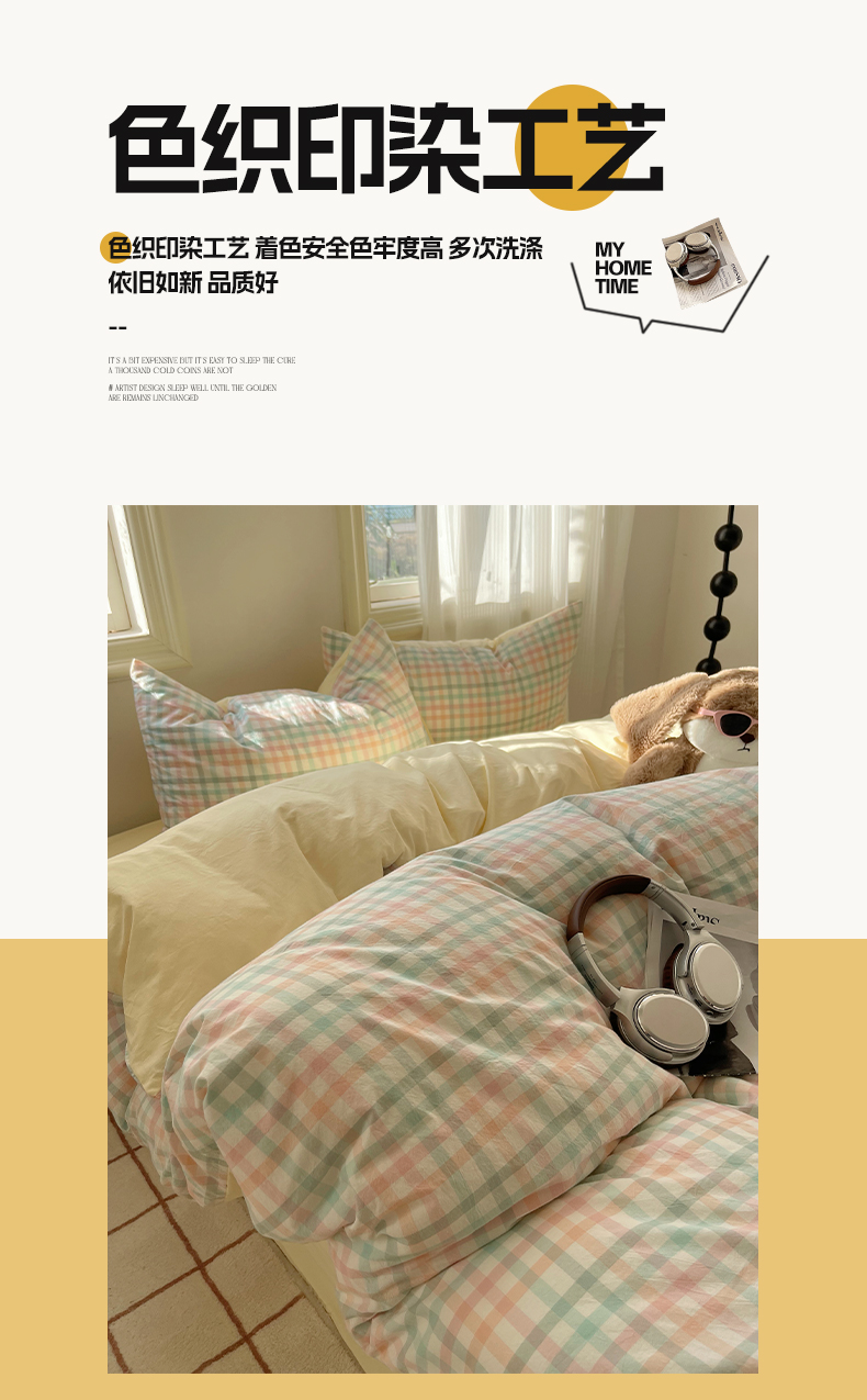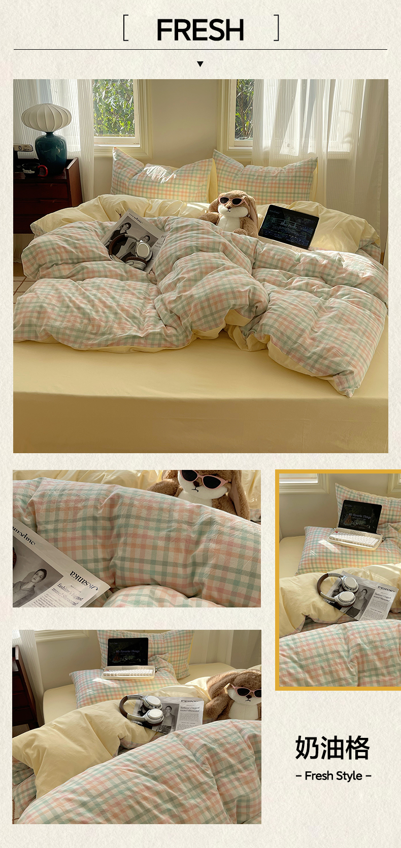 当前位置: 91家纺网 > 商品网购 > 床品套件 > 四件套 > 全棉普通四件套 > 雅居纺家纺 2025全棉色织水洗棉四件套 奶油格