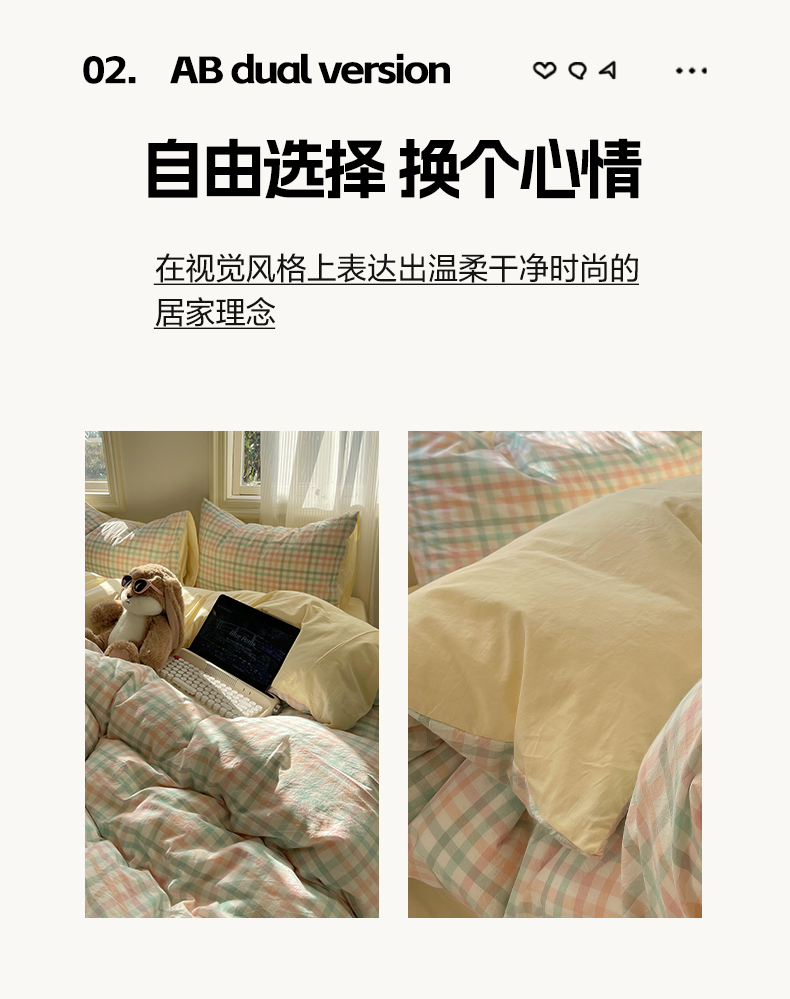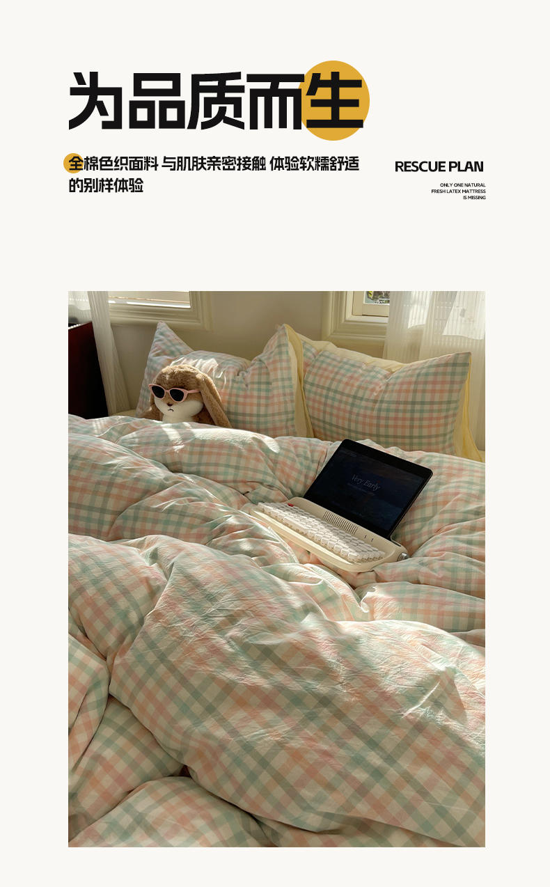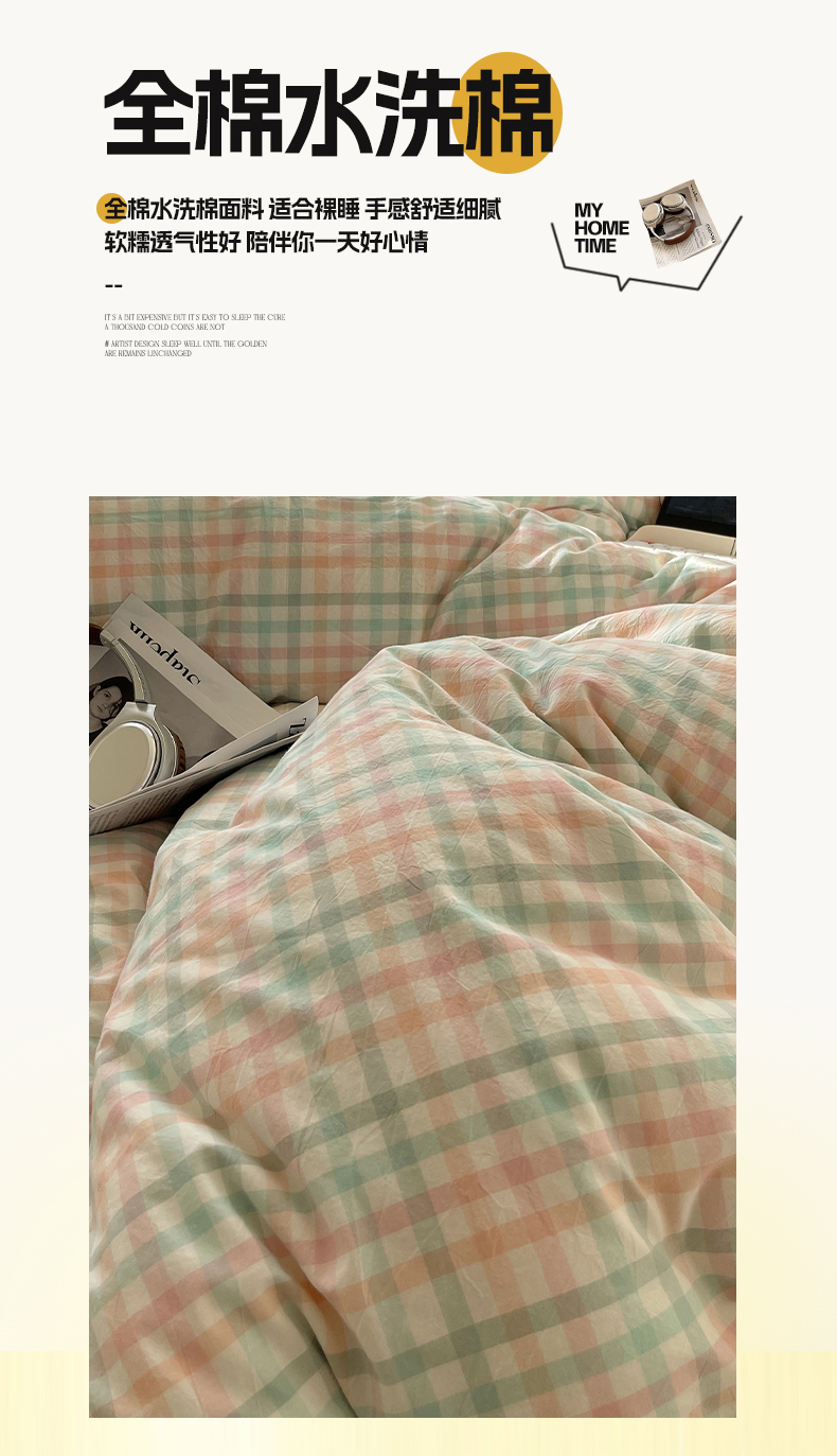 当前位置: 91家纺网 > 商品网购 > 床品套件 > 四件套 > 全棉普通四件套 > 雅居纺家纺 2025全棉色织水洗棉四件套 奶油格