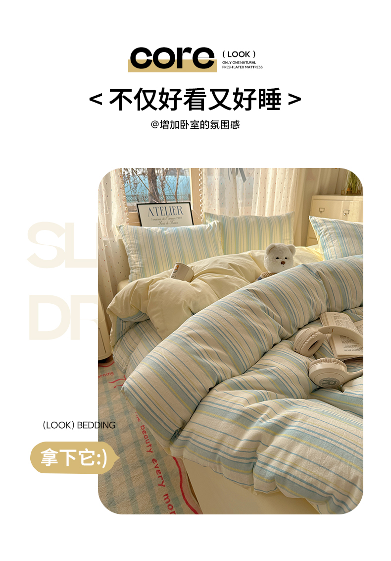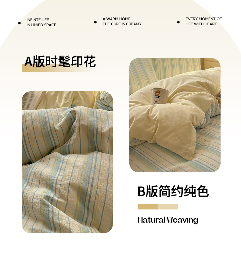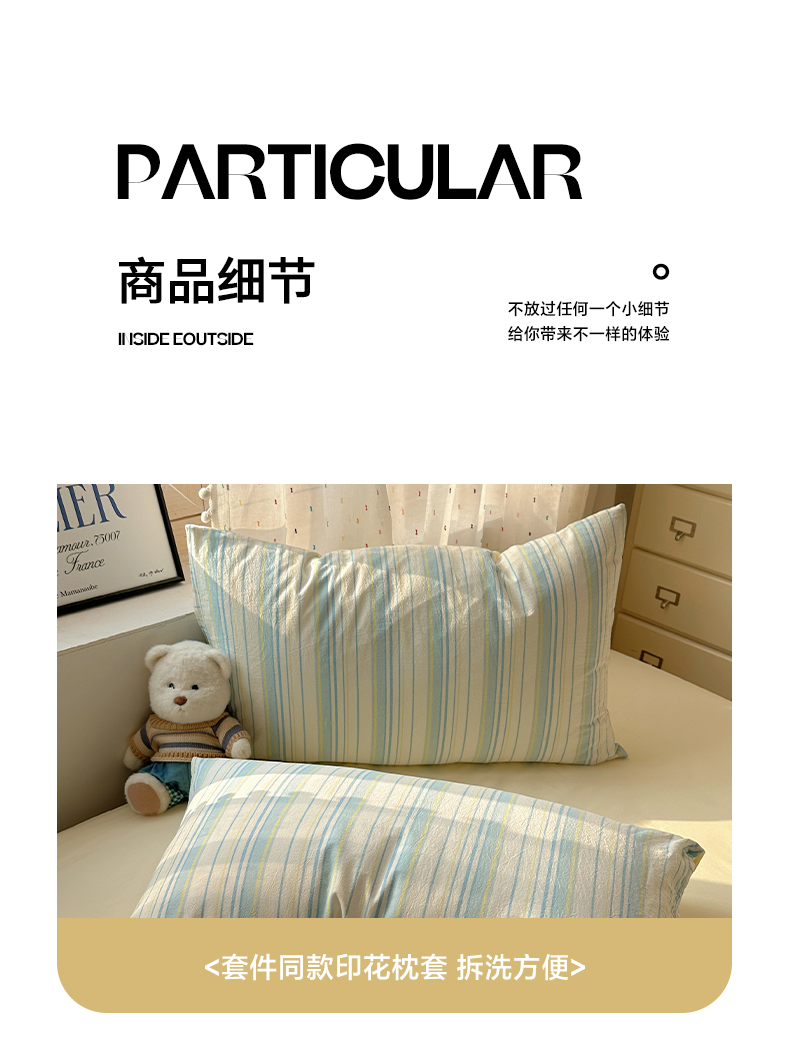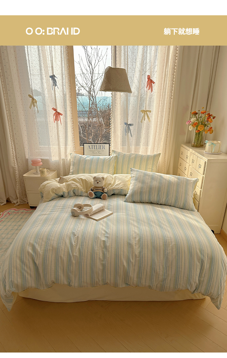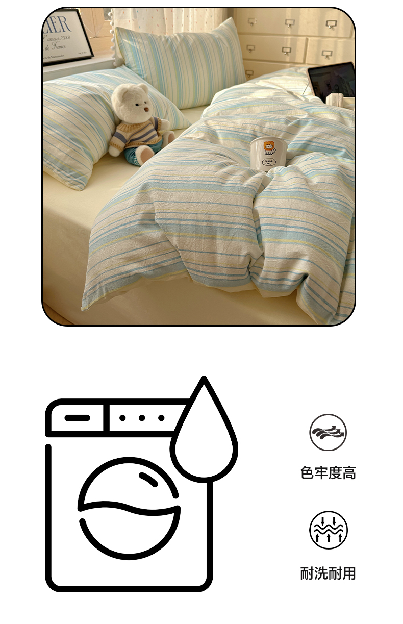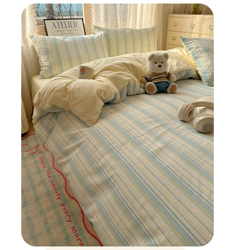 当前位置: 91家纺网 > 商品网购 > 床品套件 > 四件套 > 全棉普通四件套 > 雅居纺家纺 2025全棉色织水洗棉四件套 竖条蓝