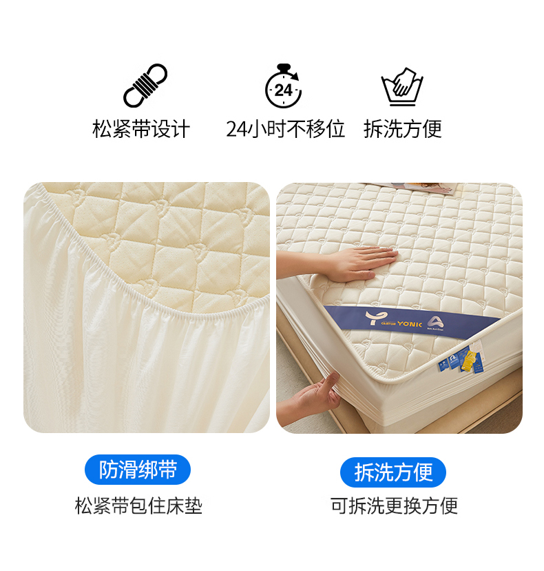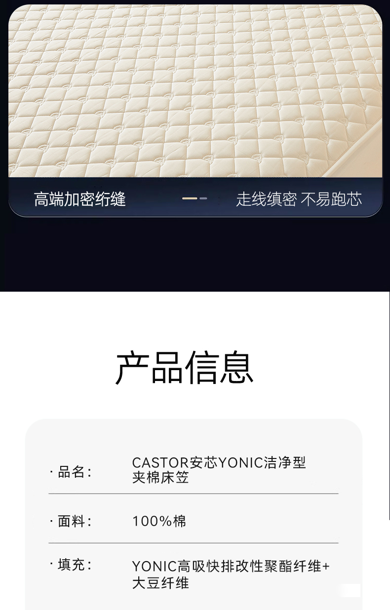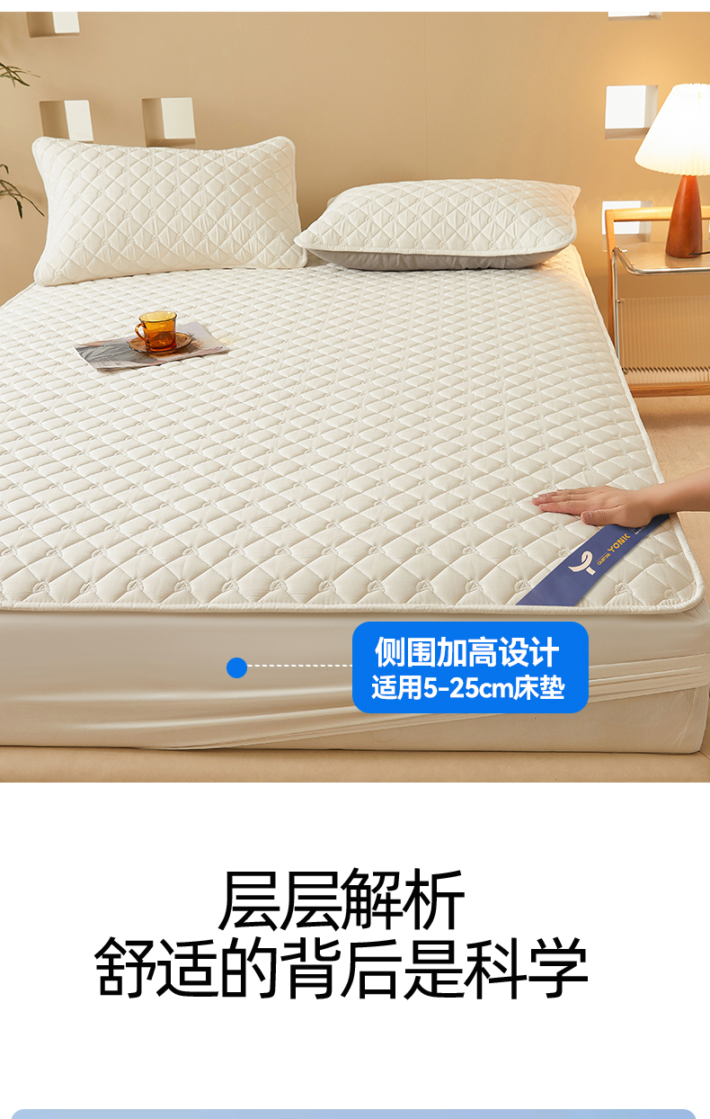 商品名称:布卢姆床垫 2025新款A类全棉castor优净丝洁净夹棉床笠--雅境系列 雅境-白