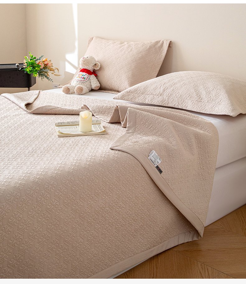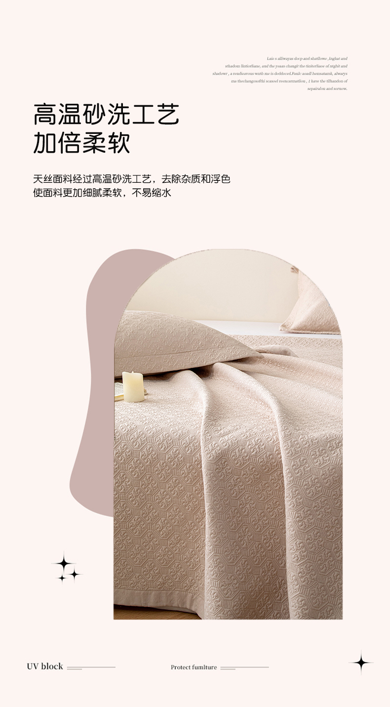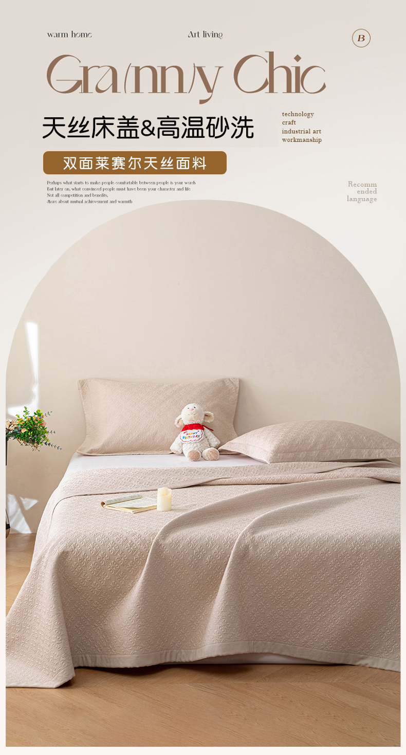 商品名称:漫时光 2025春夏新款纯色双面莱赛尔天丝砂洗床盖三件套 天丝-西柚