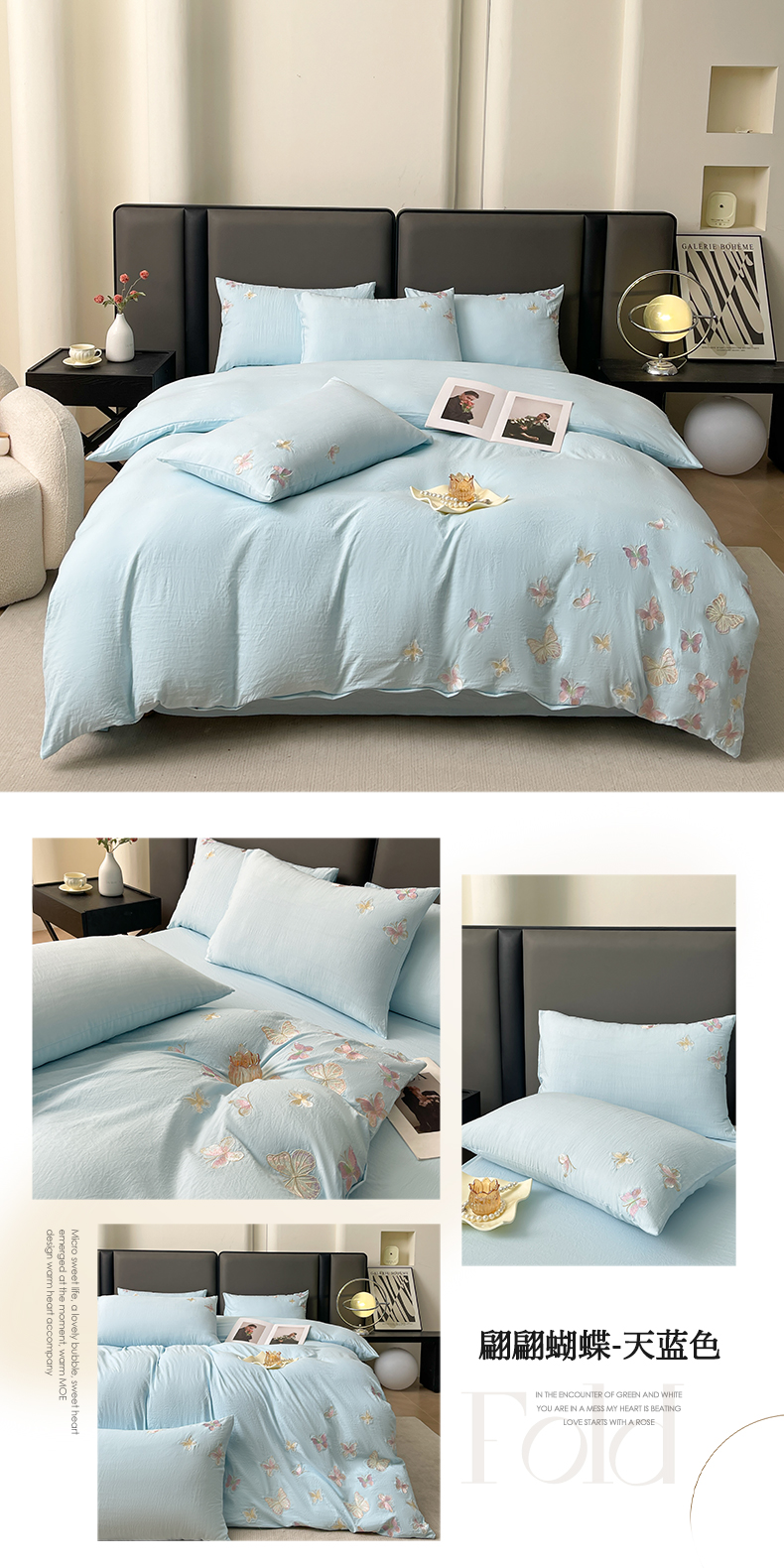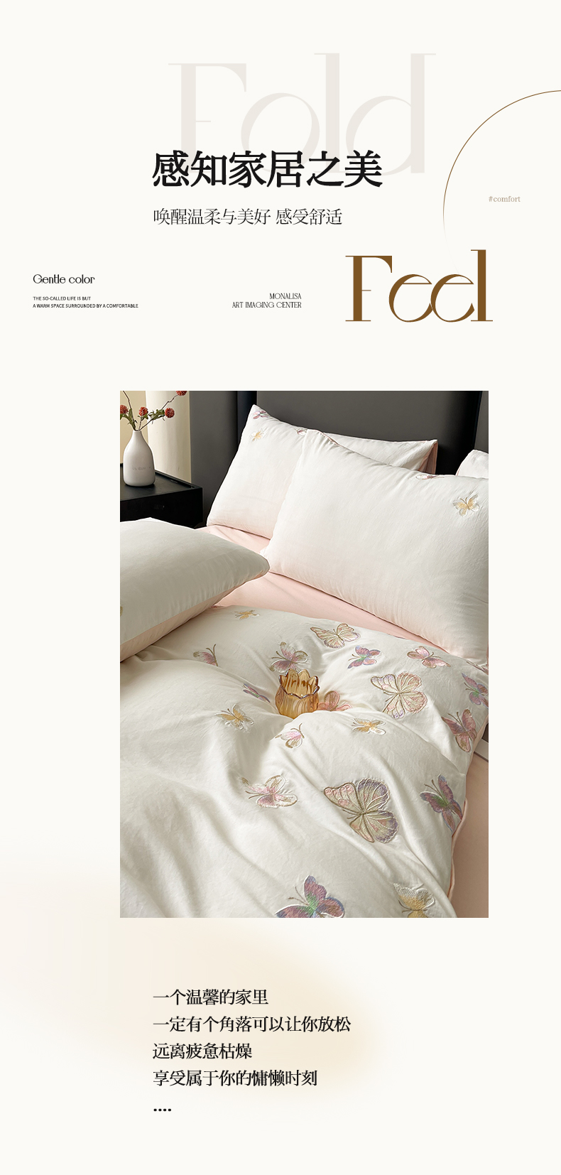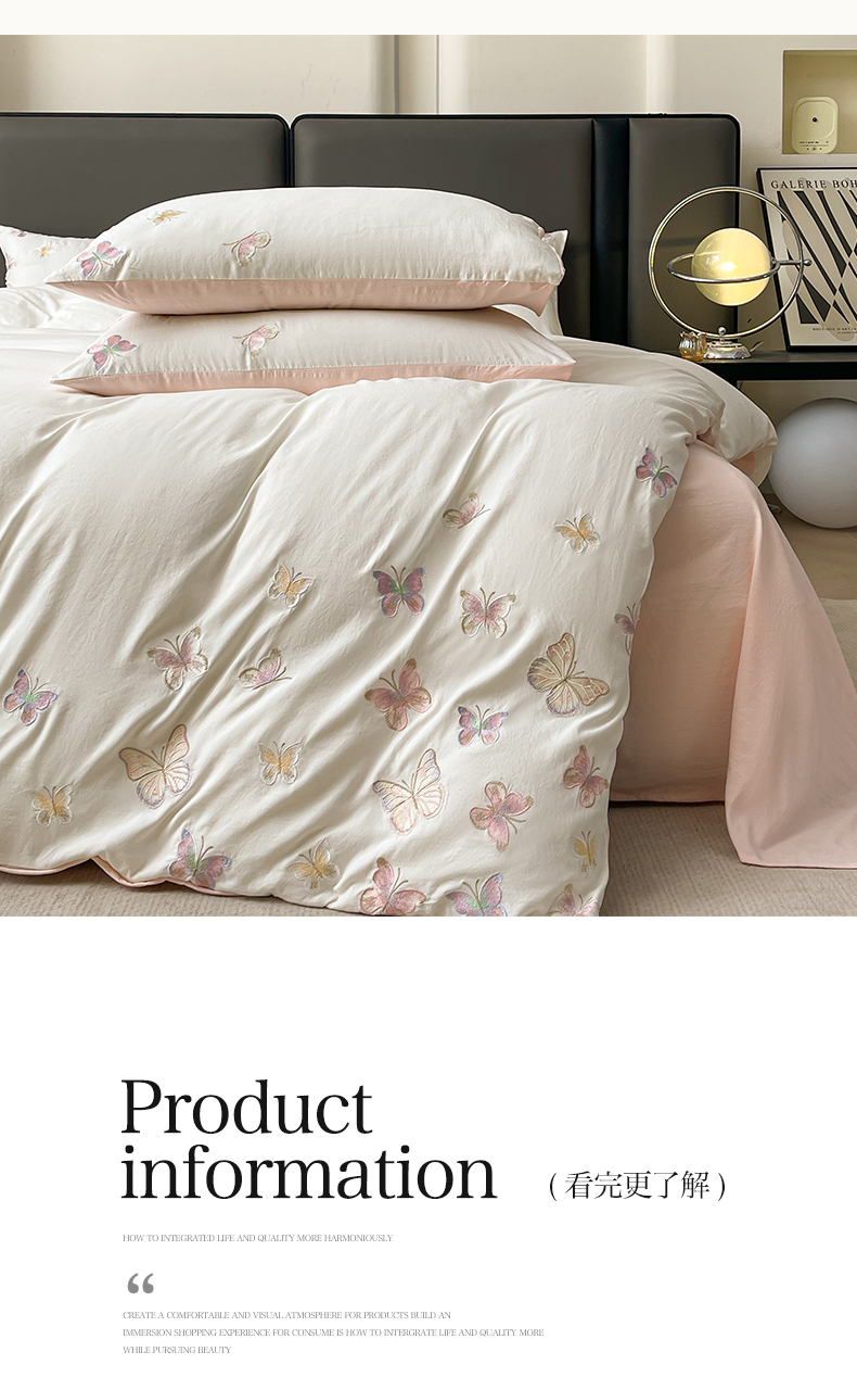 商品名称:逸尚阁 2025新款水洗磨毛刺绣四件套--七彩蝴蝶系列(提供买家秀) 七彩蝴蝶-白粉色