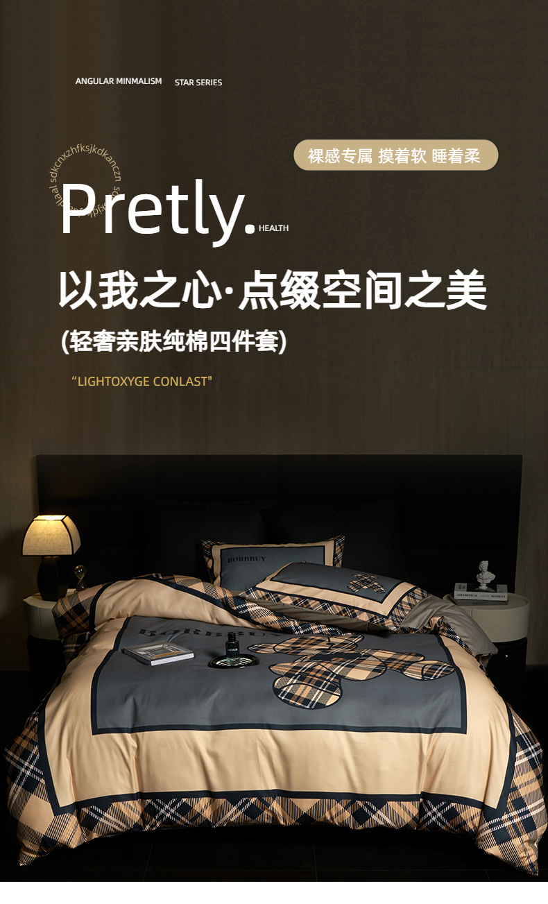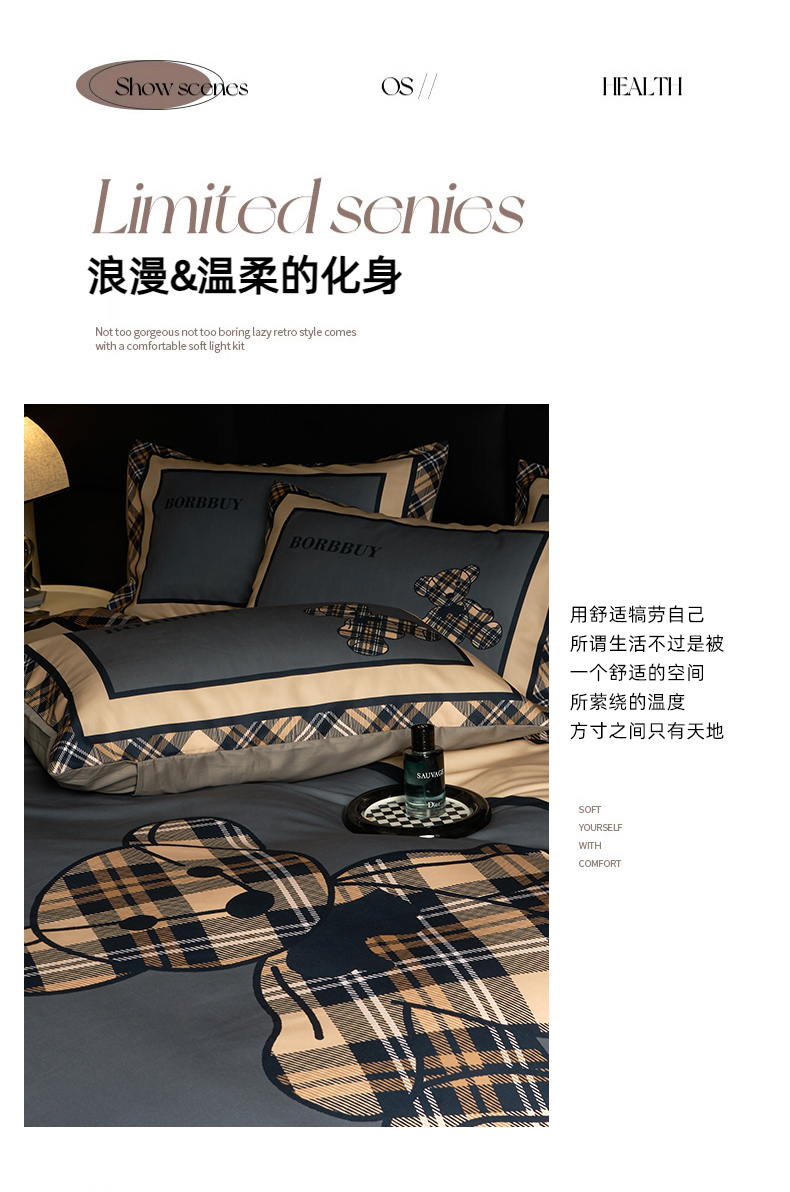 当前位置: 91家纺网 > 商品网购 > 床品套件 > 四件套 > 全棉普通四件套 > 花沐 2025新款轻奢潮牌亲肤棉纯棉四件套 英伦熊