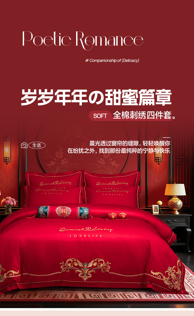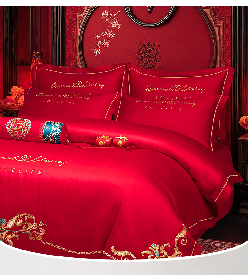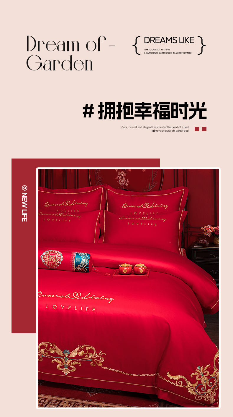(总)花愿(原花纪) 2025新款水洗棉刺绣婚庆四件套系列,丹枫迎喜,欢喜,良缘,龙凤欢喜,玫瑰之恋,美满,如意,天禧,唯一,喜爱,心心相印,幸福,永恒之恋,钟爱一生
