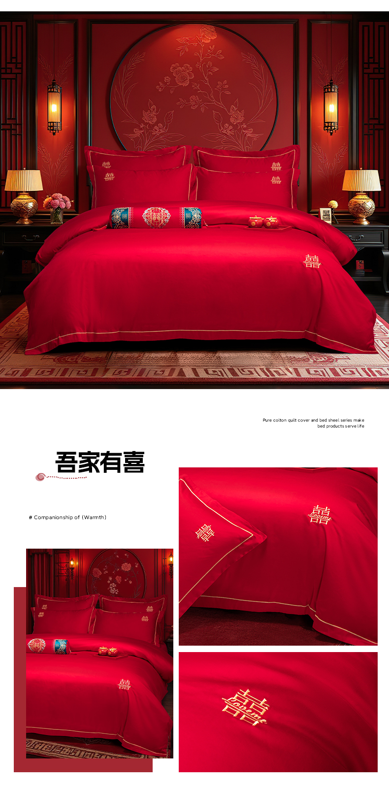 (总)花愿(原花纪) 水洗棉刺绣婚庆四件套,喜上加喜,禧悦,永结同心