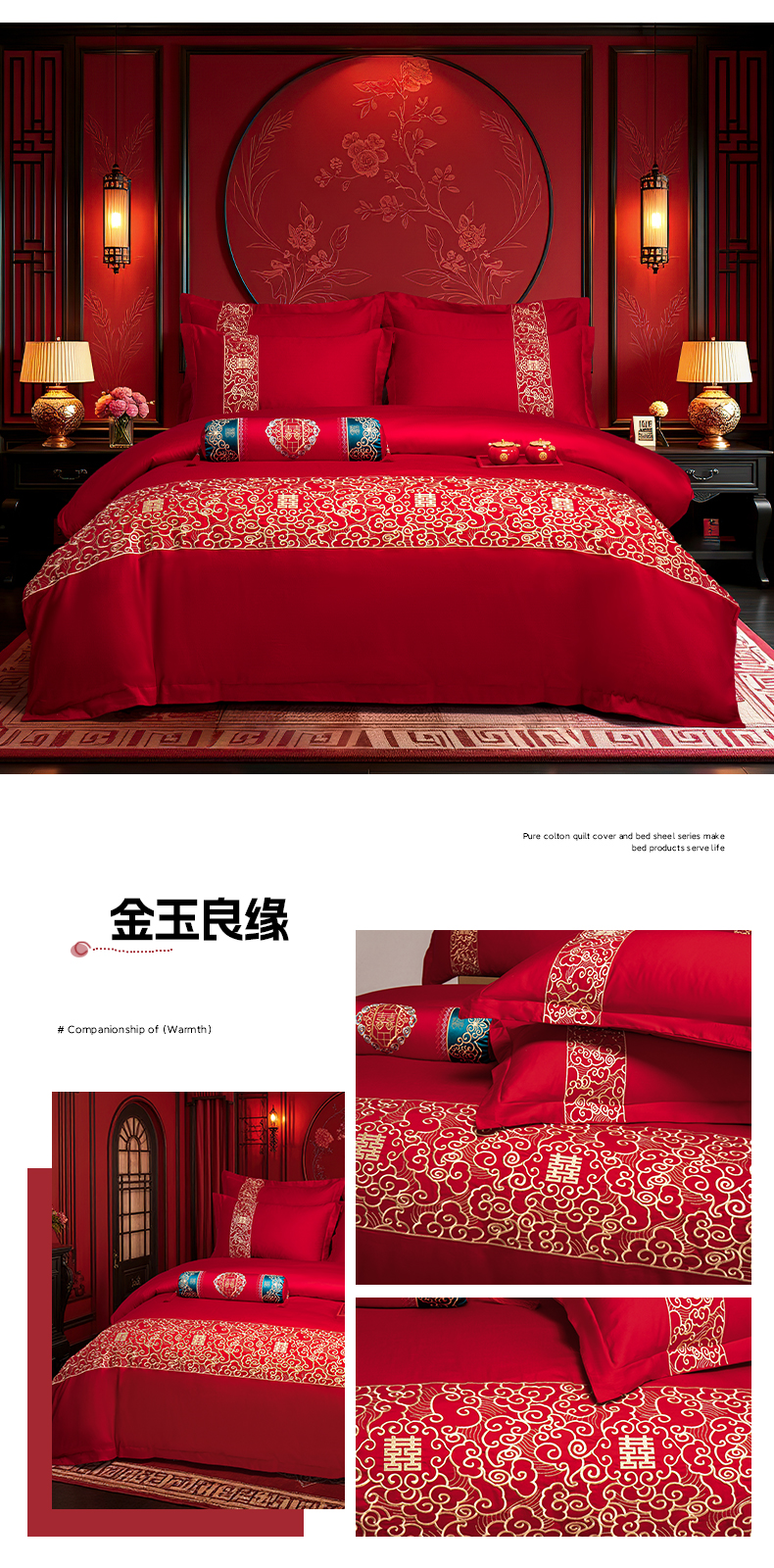 (总)花愿(原花纪) 2025新款全棉婚庆刺绣款四件套