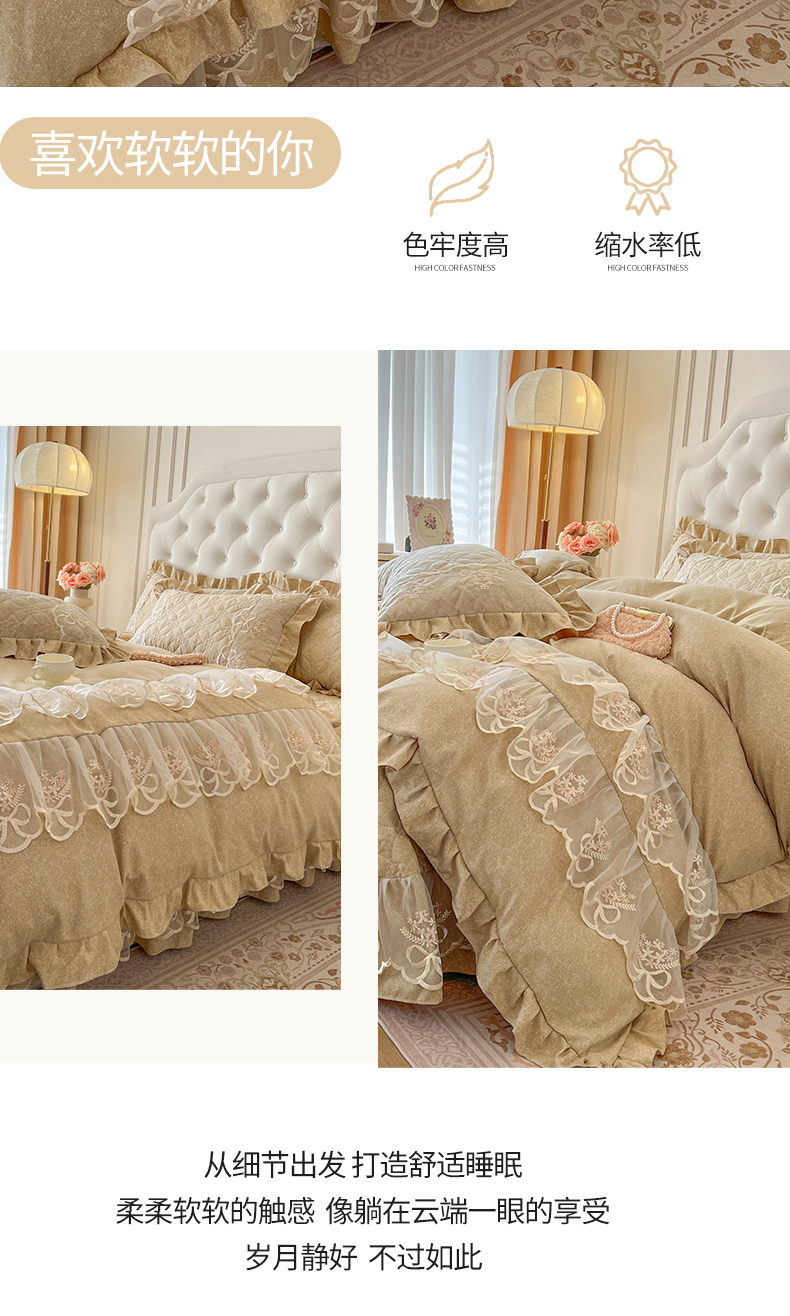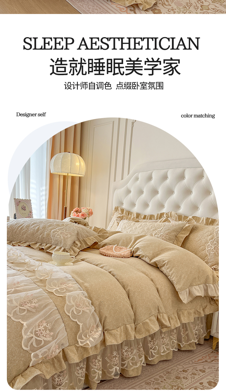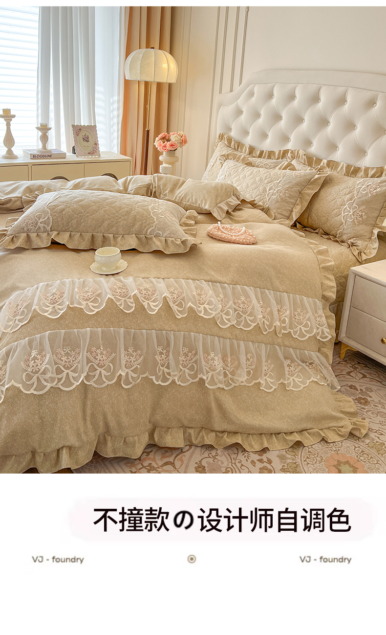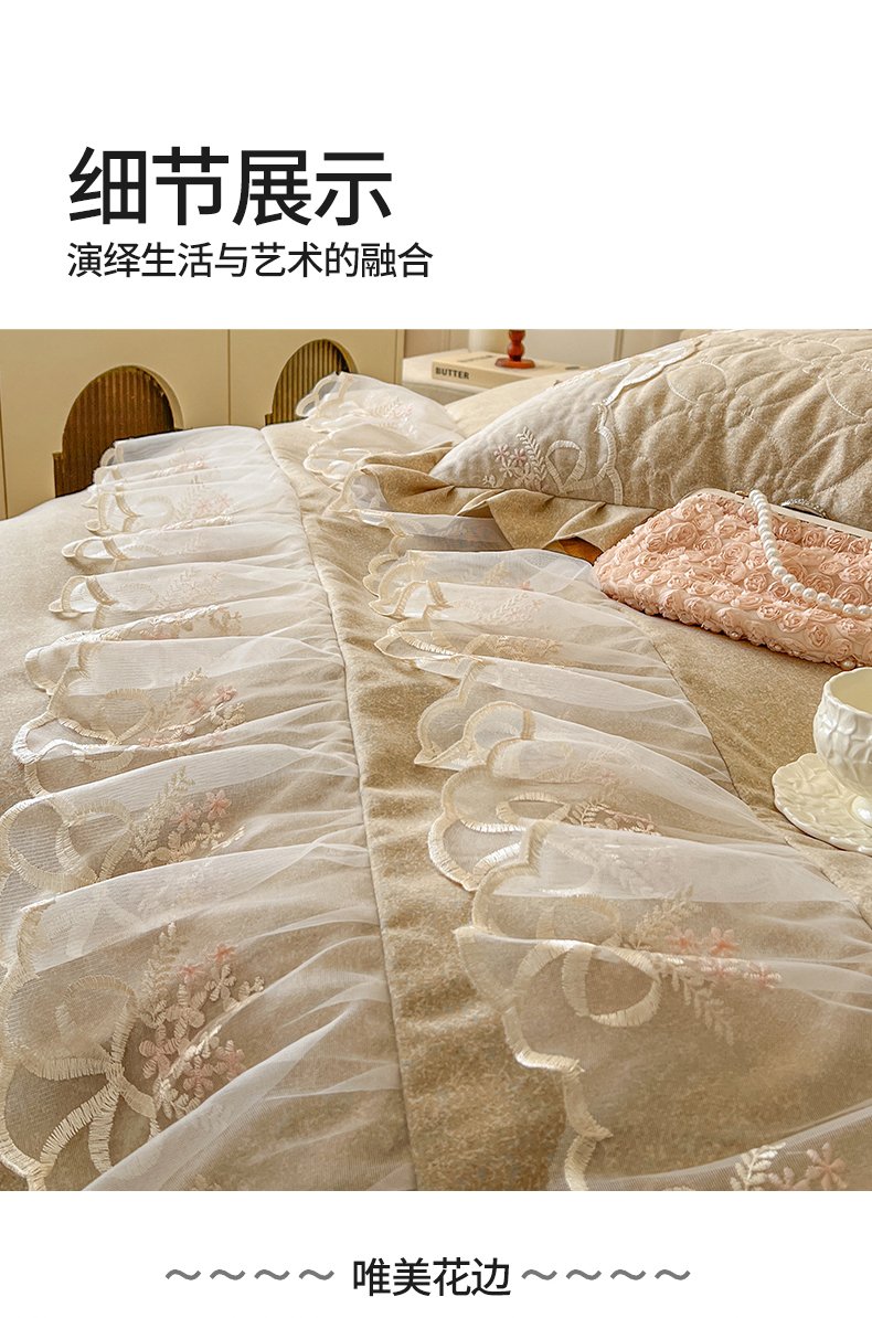 (总)网红馆(ck家纺) 2025新款牛奶绒花边床盖四件套-甜蜜蜜,甜蜜蜜-粉,甜蜜蜜-咖,甜蜜蜜-绿,甜蜜蜜-米,甜蜜蜜-紫