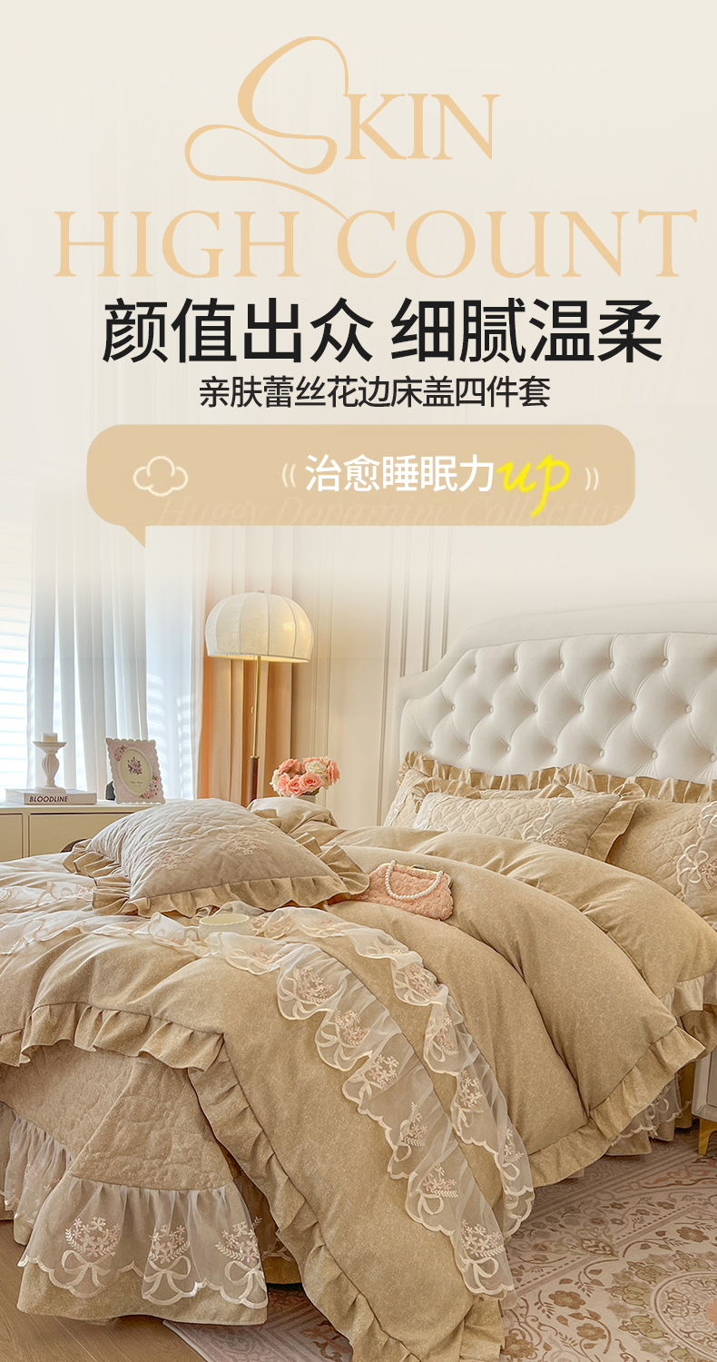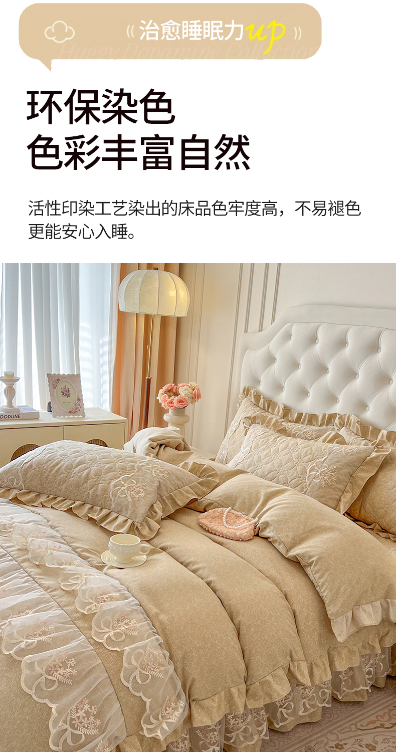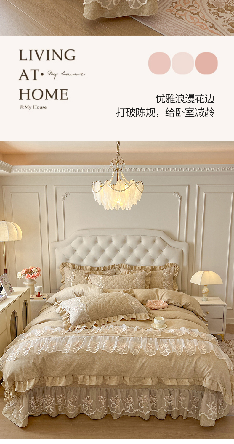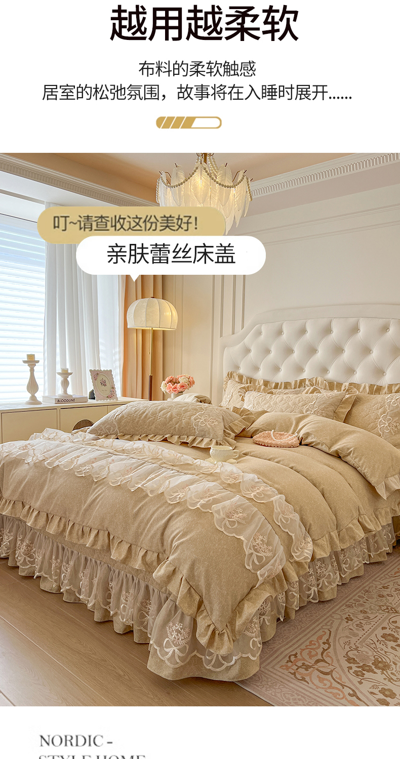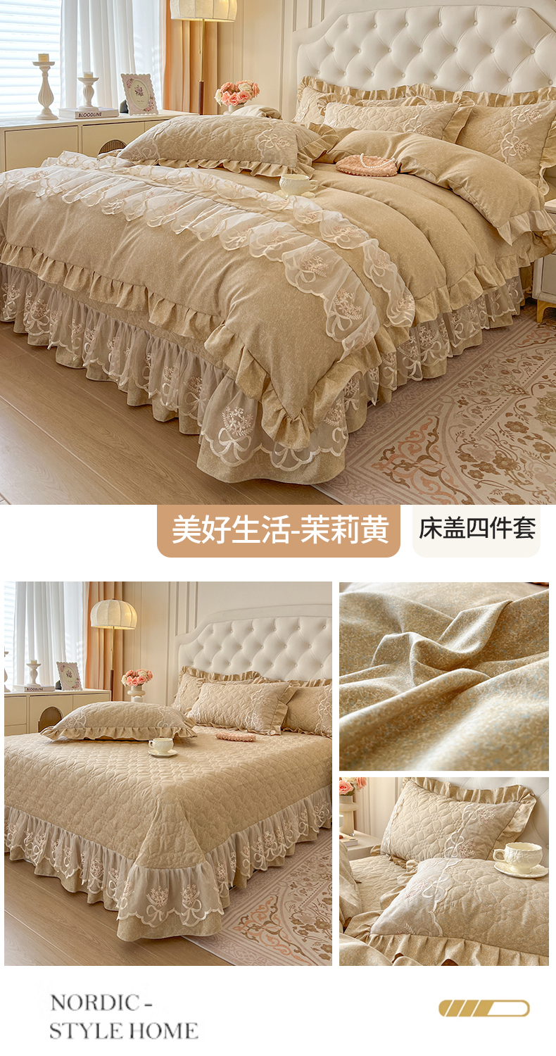 网红馆 2025新款亲肤蕾丝花边床盖款四件套-美好生活 美好生活-茉莉黄
