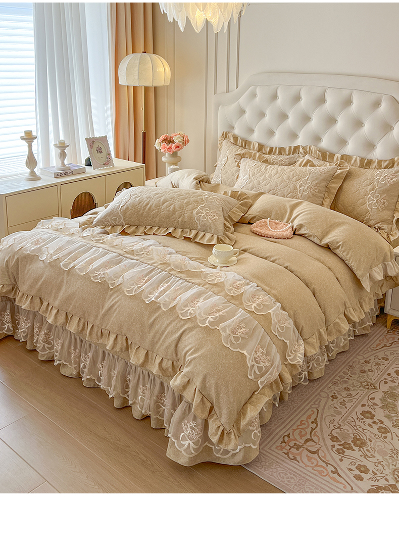 (总)网红馆(ck家纺) 2025新款亲肤舒适牛奶绒蕾丝边床裙四件套-秘密花园,秘密花园-粉色,秘密花园-卡其,秘密花园-米色,秘密花园-紫色