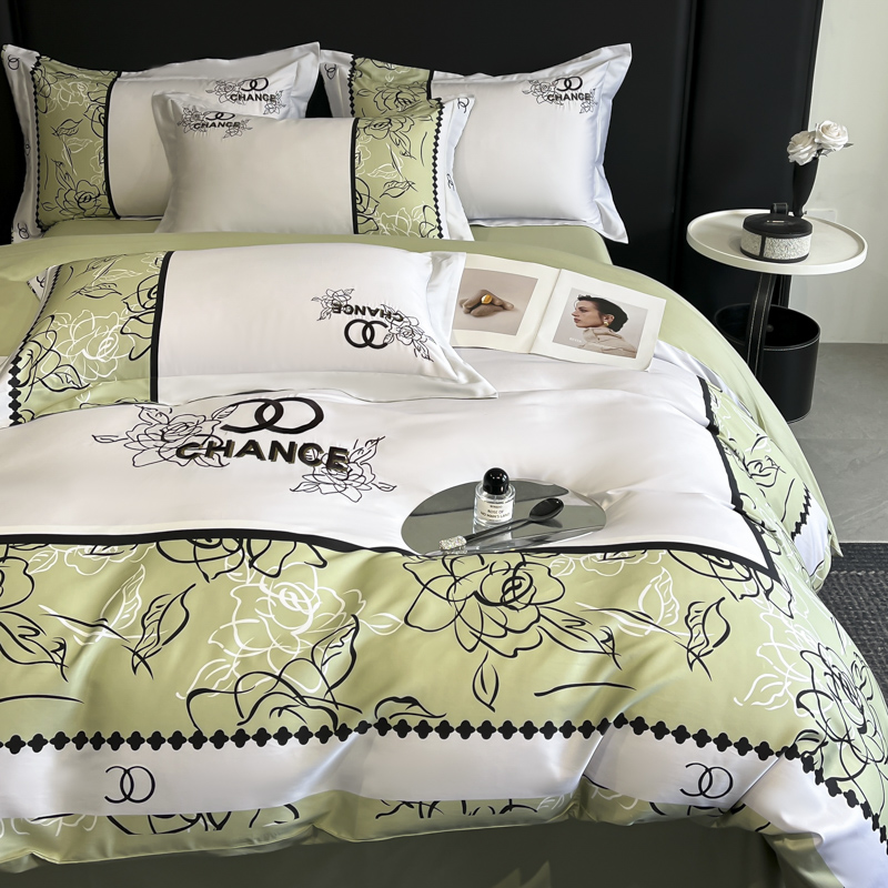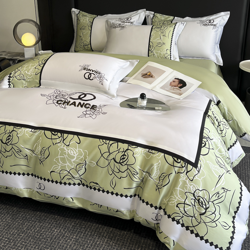 (总)博纳家纺 2026新款正宗60支纯棉 活性数码印花 宽边高级简奢 撞色拼角 纯棉四件套,查尔斯,清沙月贝,睡美人,玉树临风