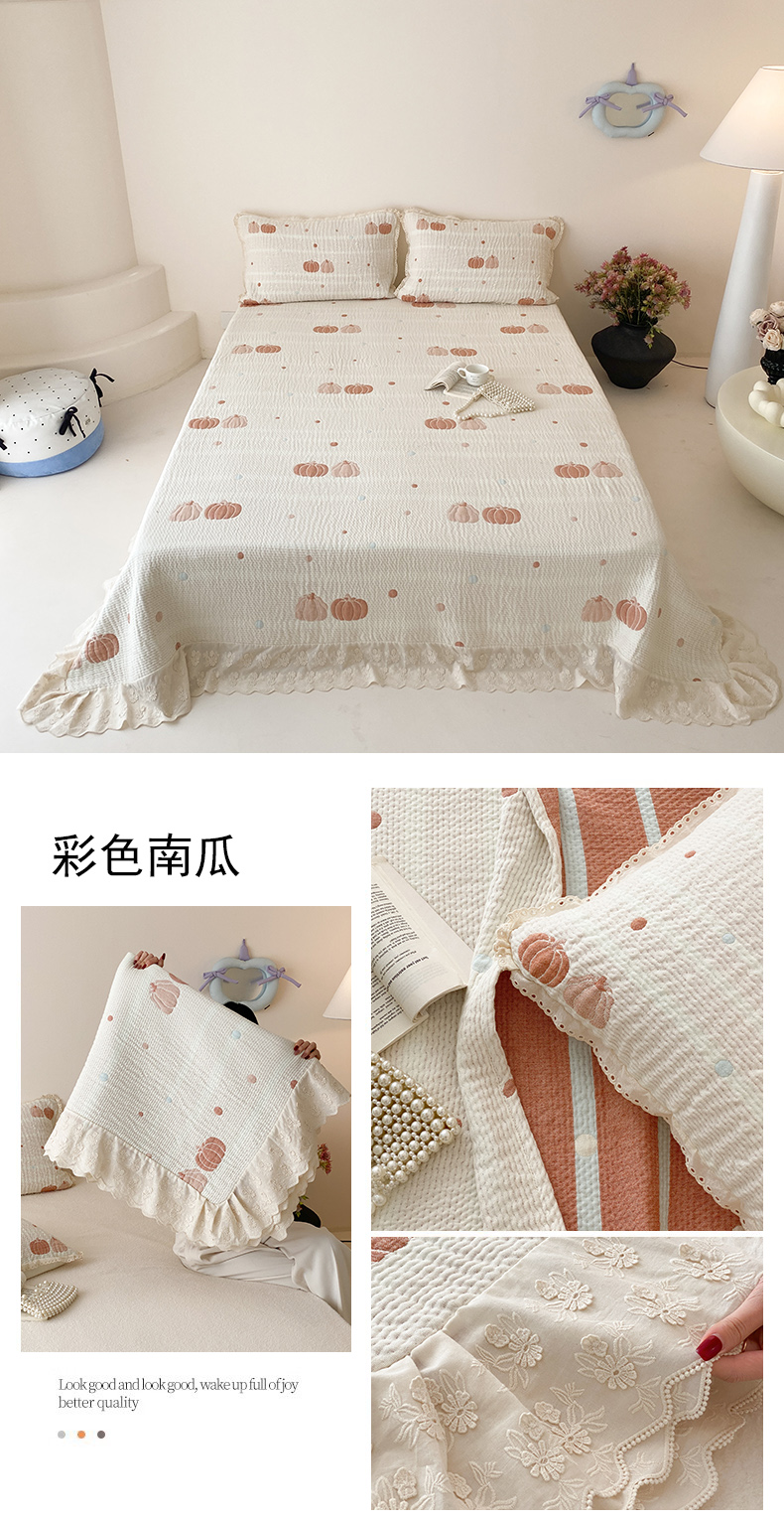 商品名称:麻依 2025新款韩国清新全棉纱布床盖三件套 两颗草莓