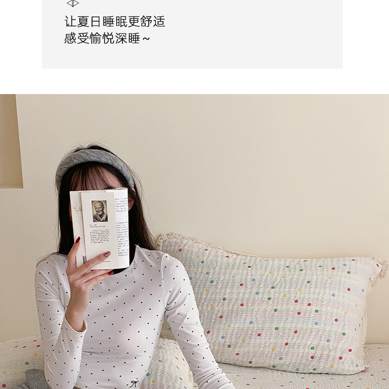 商品名称:麻依 2025新款多层纱布天丝夏凉被子被芯 奶油波点-灰