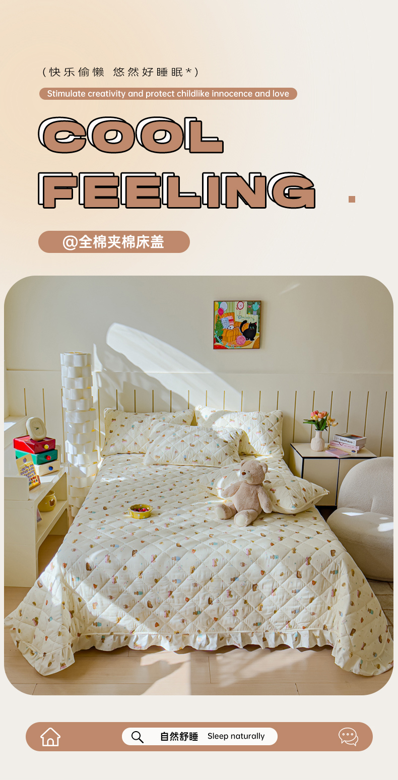 U品汇 2025新品A类全棉夹棉床盖纯棉100%棉绗缝三件套炕垫褥子13372 G狗狗乐园