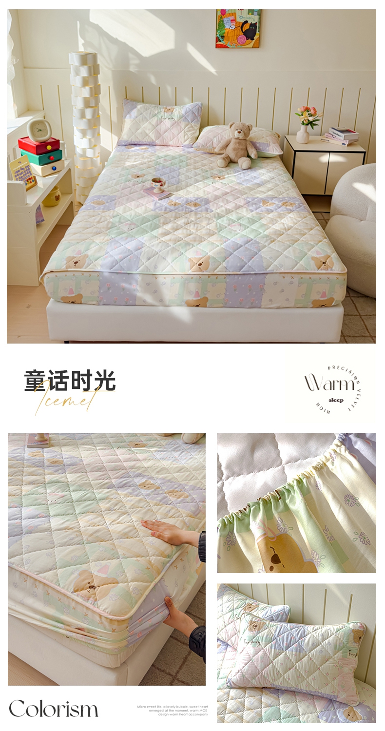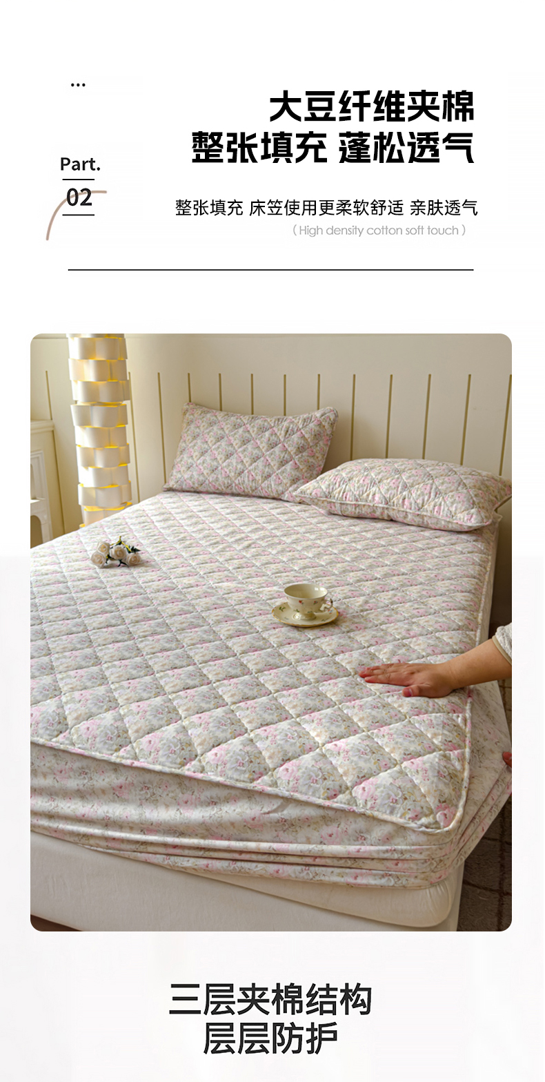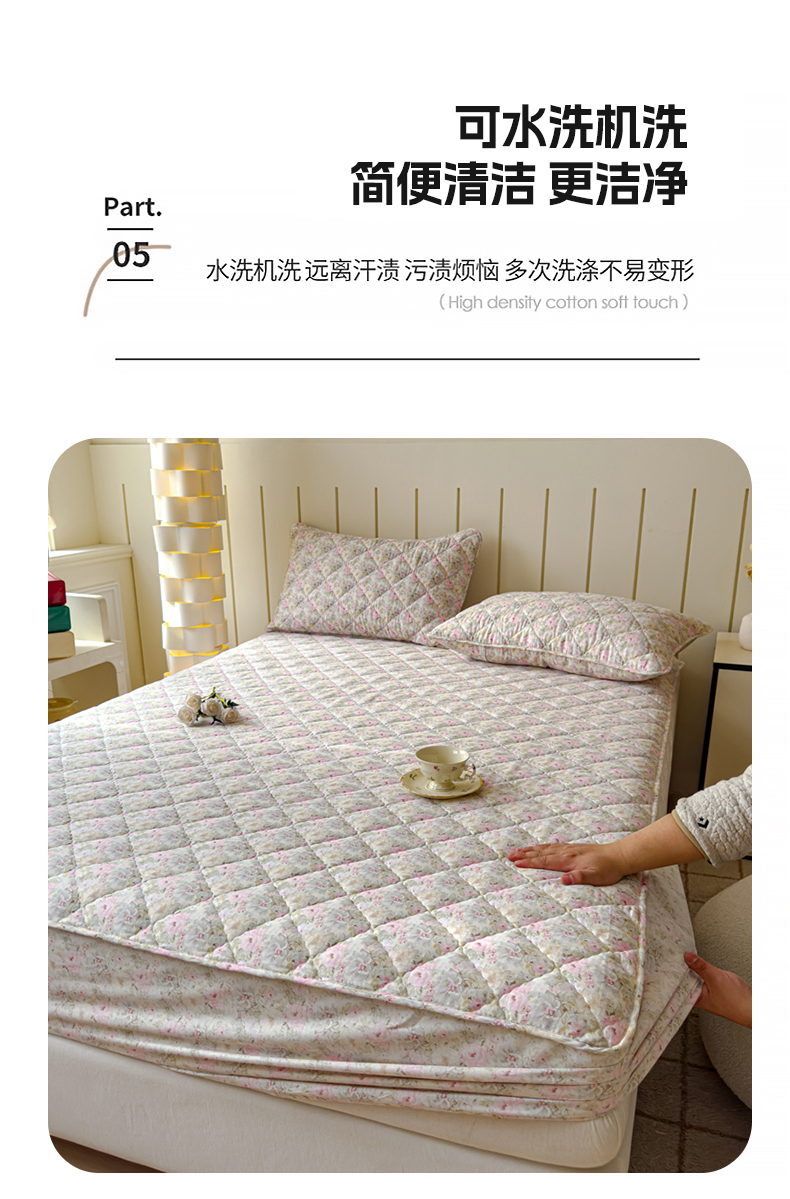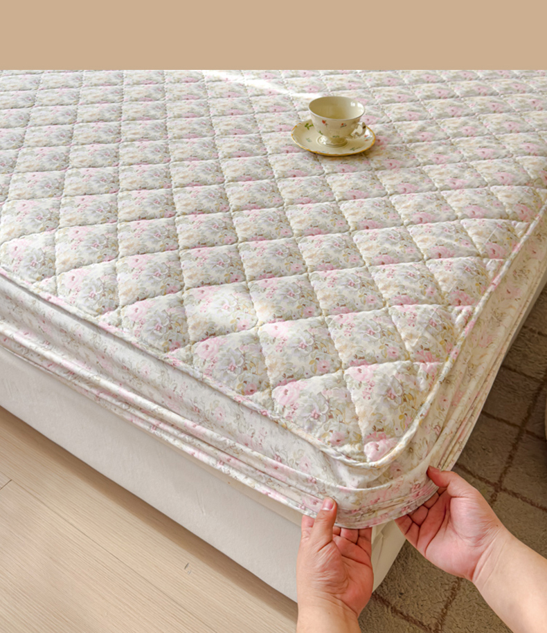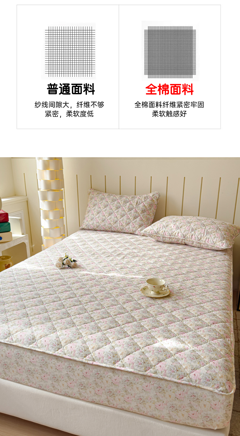 U品汇 2025新款A类全棉夹棉防水床笠床罩单件隔尿透气床垫加厚防尘可水洗保护套 杏园暖秋粉