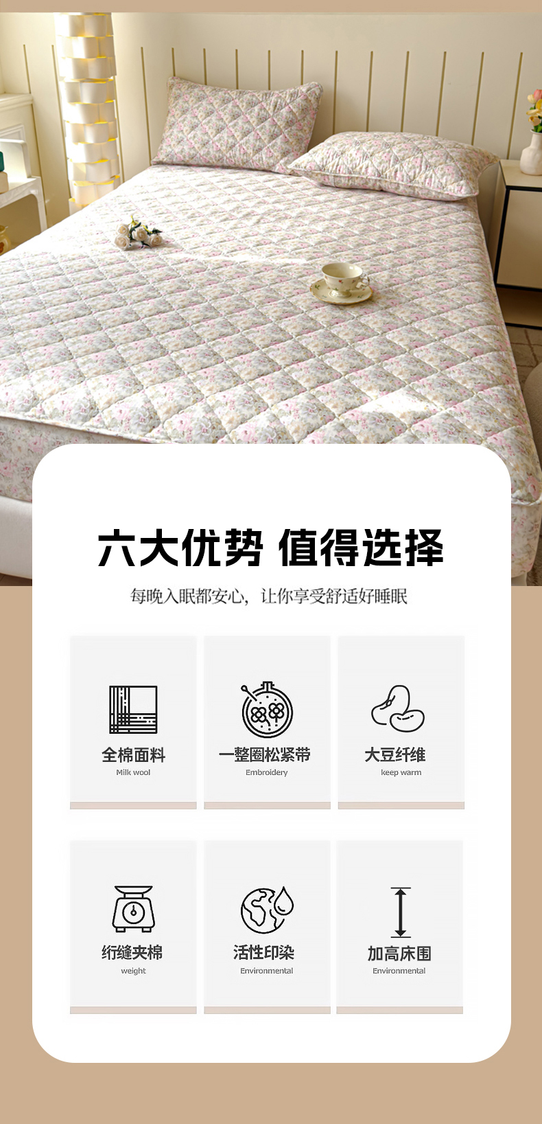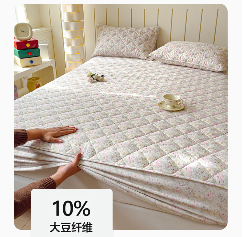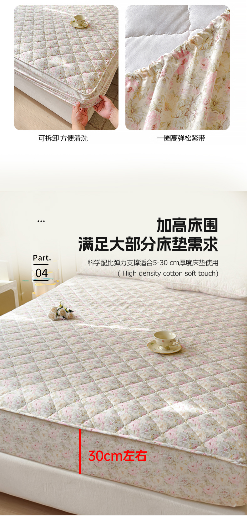 • 91家纺网 家纺一手货源 找家纺 U品汇 2025新款A类全棉夹棉防水床笠床罩单件隔尿透气床垫加厚防尘可水洗保护套 杏园暖秋粉
