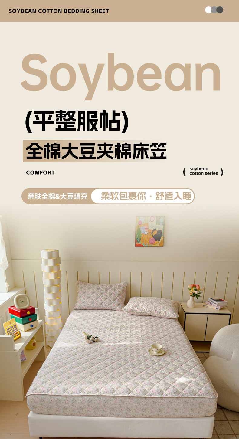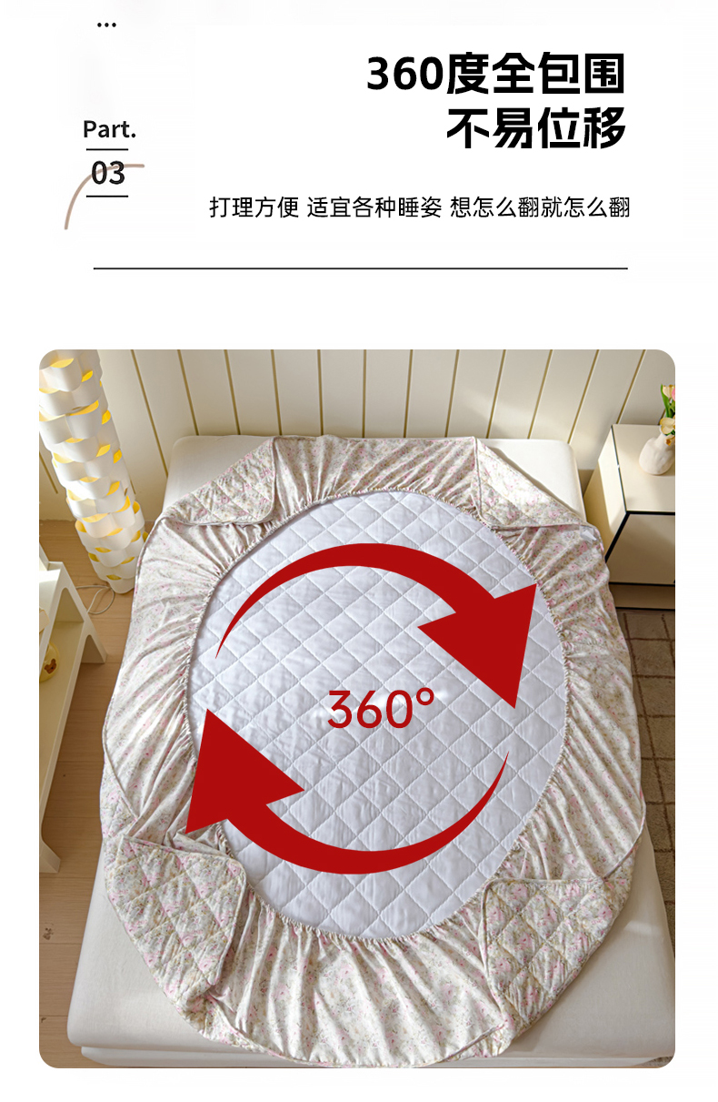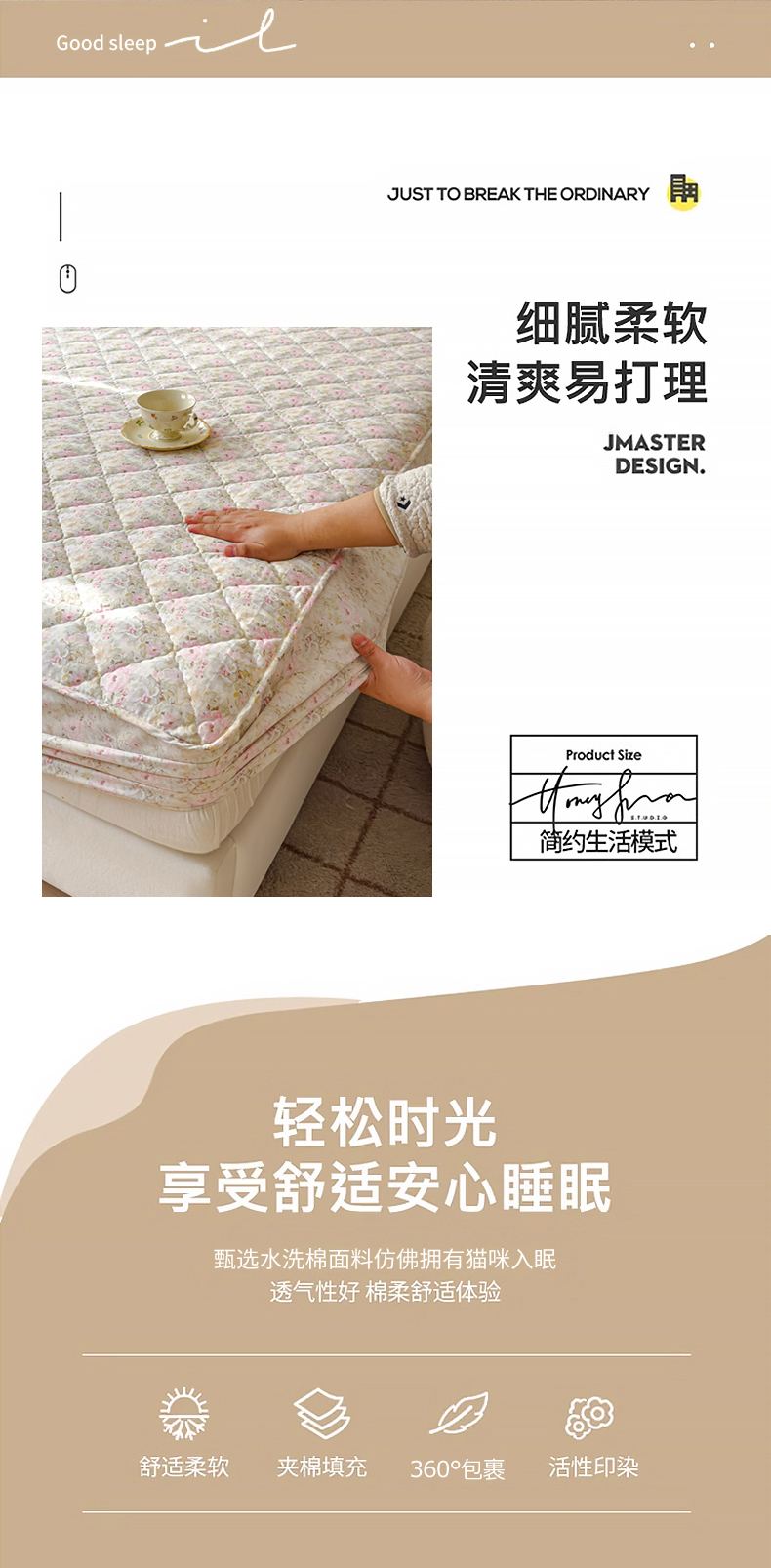 • 91家纺网 家纺一手货源 找家纺 U品汇 2025新款A类全棉夹棉防水床笠床罩单件隔尿透气床垫加厚防尘可水洗保护套 杏园暖秋粉