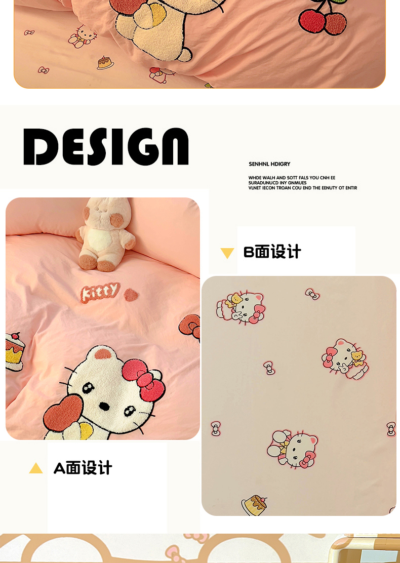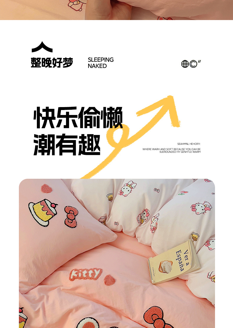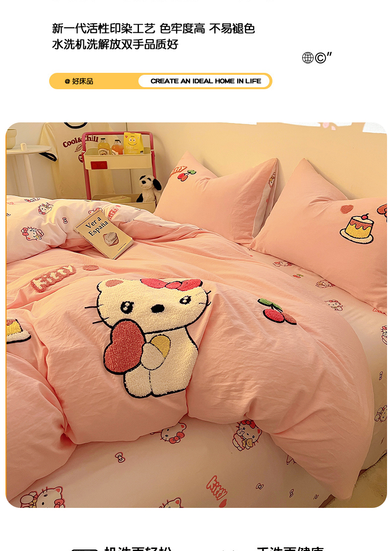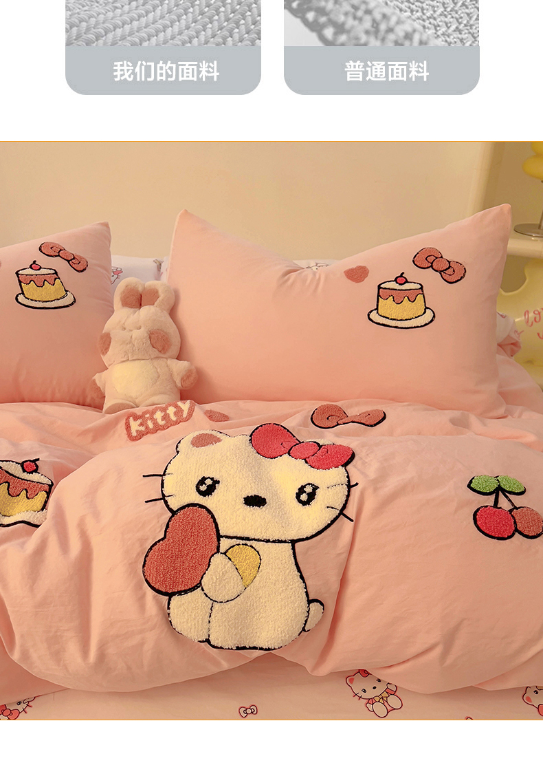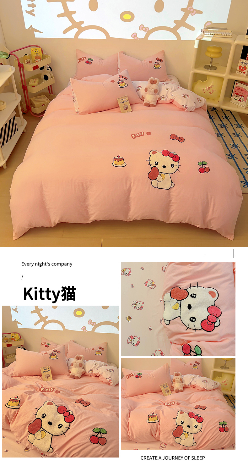 当前位置: 91家纺网 > 商品网购 > 床品套件 > 四件套 > 毛巾绣四件套 > 易辰美家纺2025新款超柔水洗棉印花毛巾绣四件套 Kitty猫