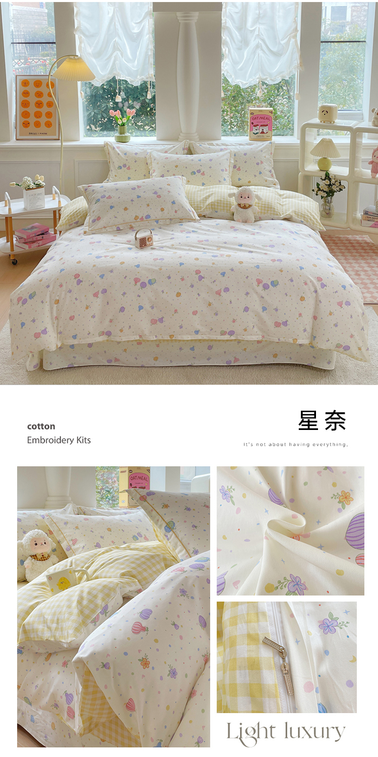 铭博家纺 新款直播爆款网红全棉四件套13070印花吊边一字绣纯棉被套工艺款 星奈