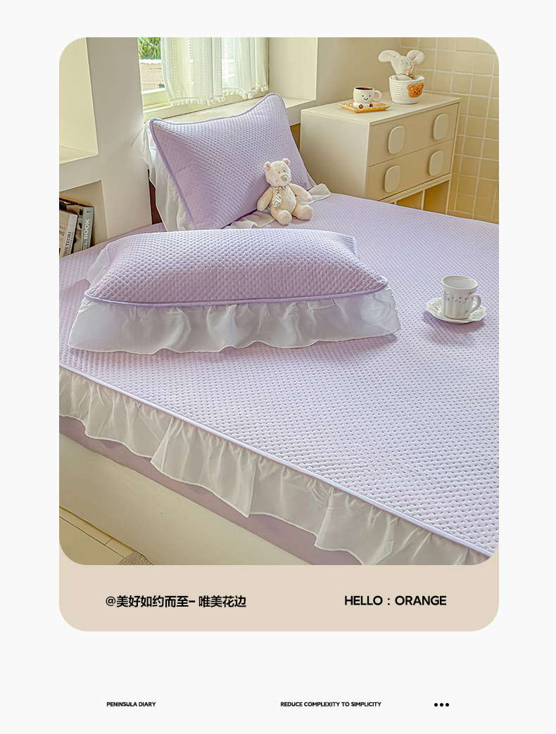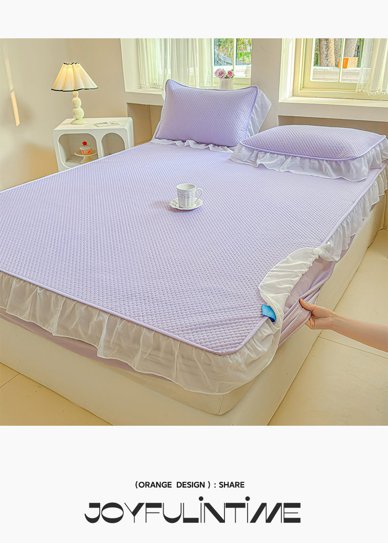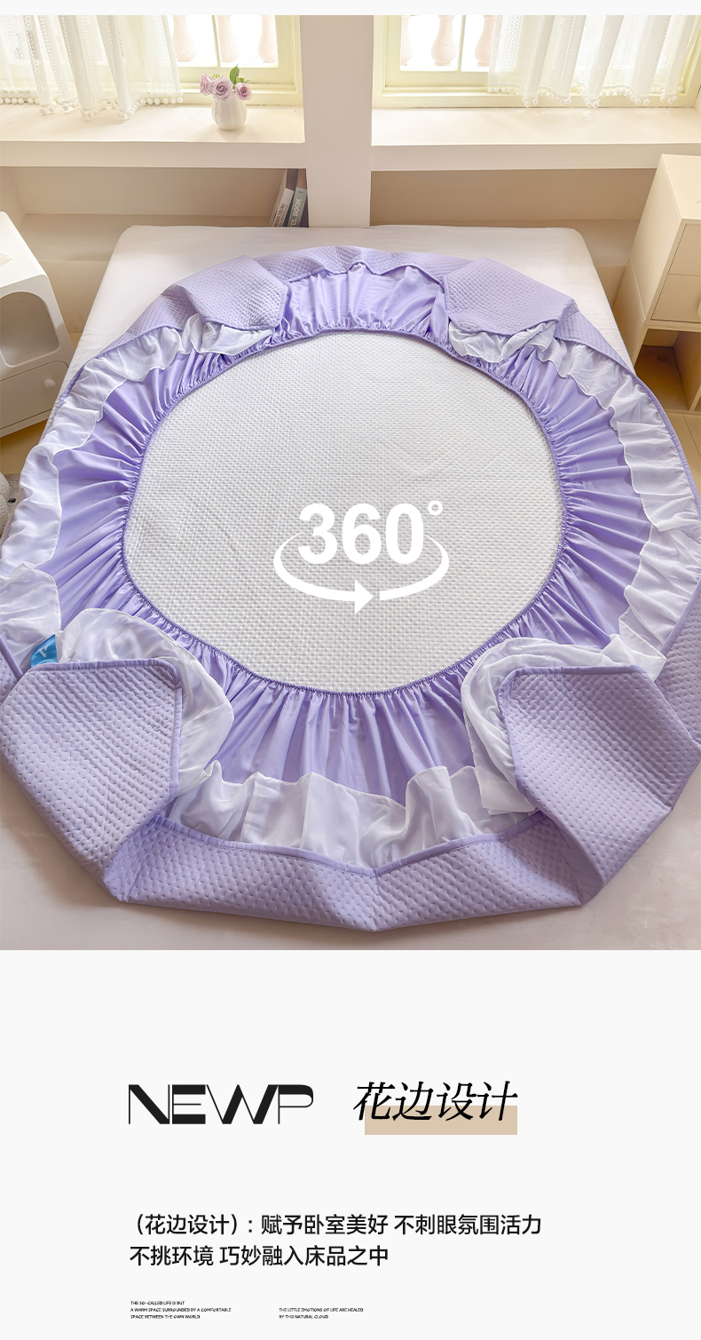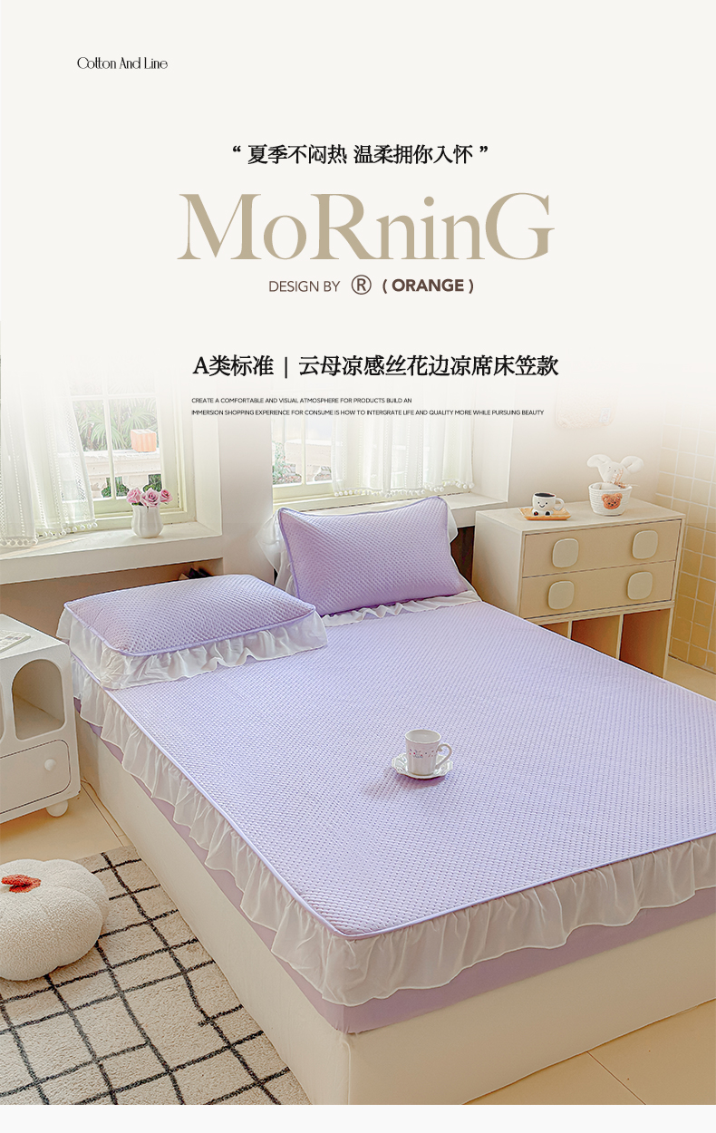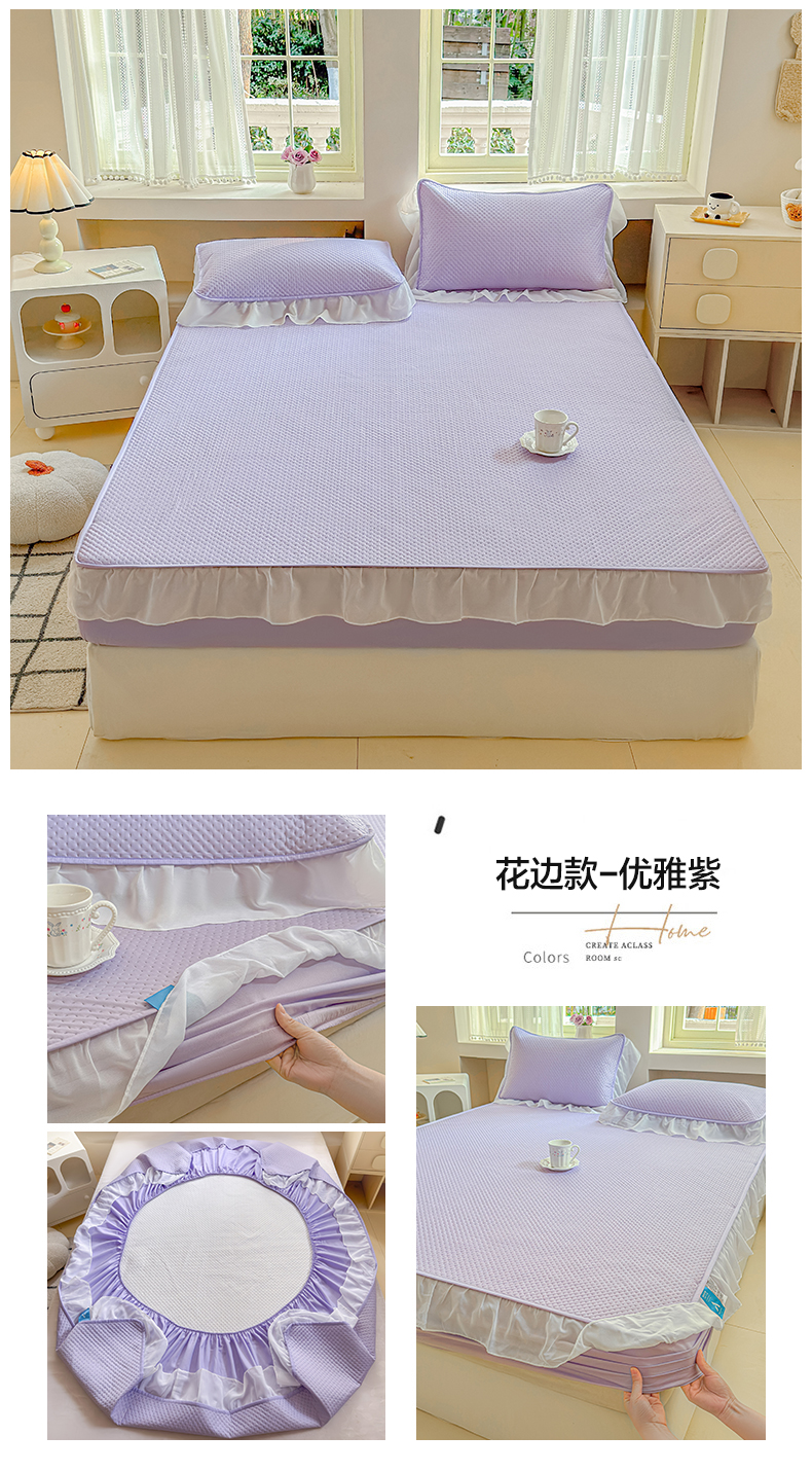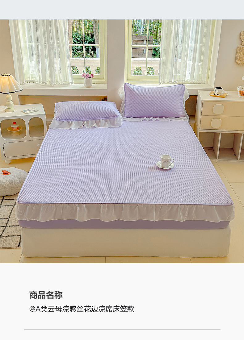 莱登卡奴 2025新款A类云母凉感丝豆豆被夏被凉席系列-花边凉席床笠款 花边款-优雅紫