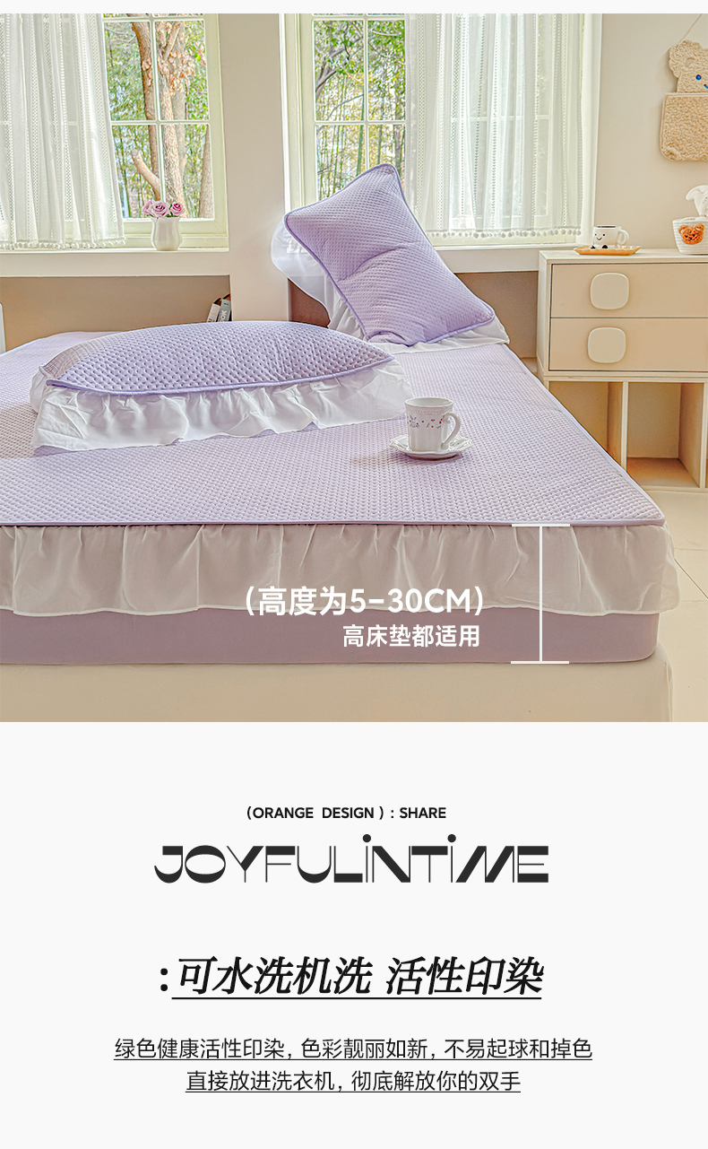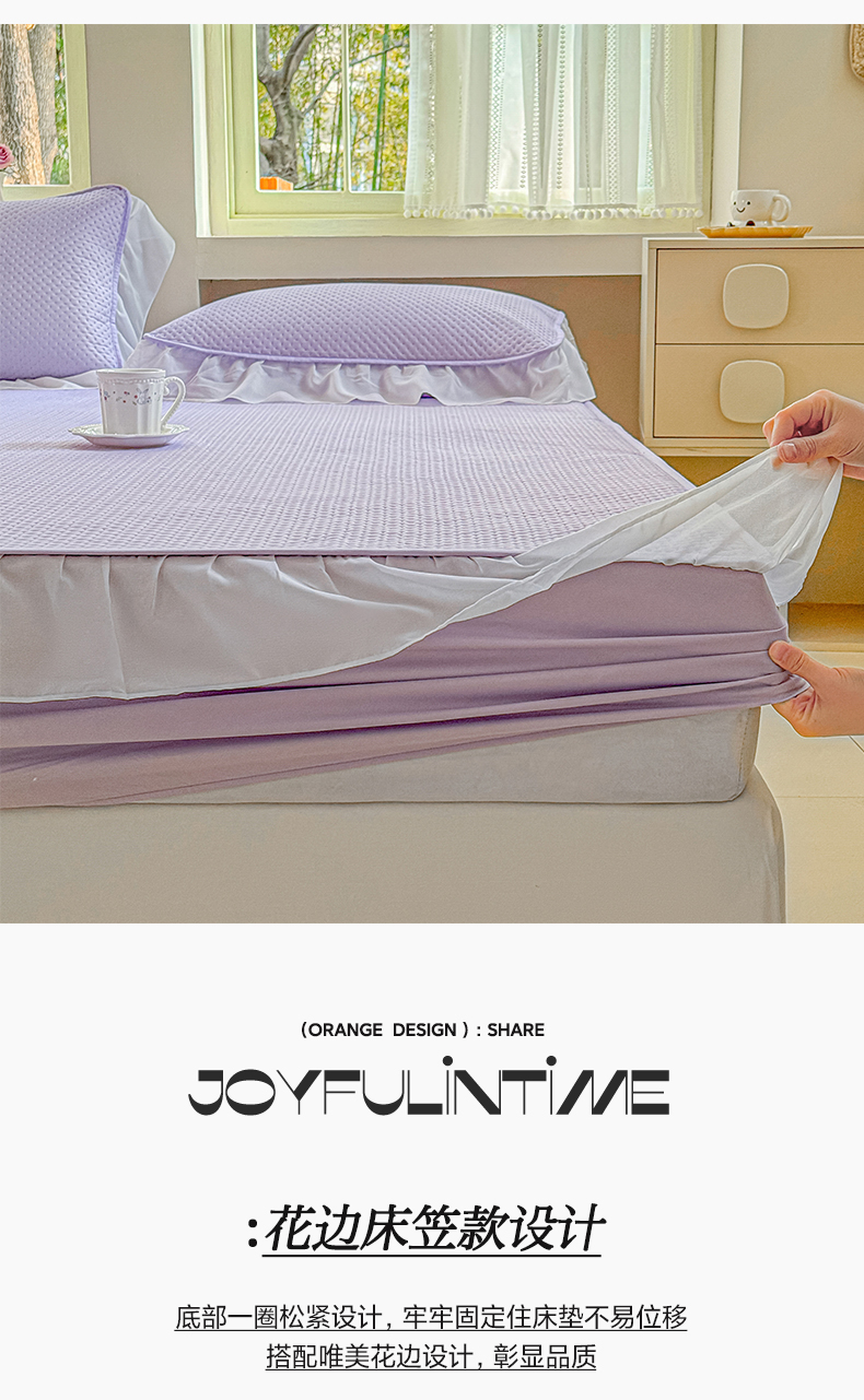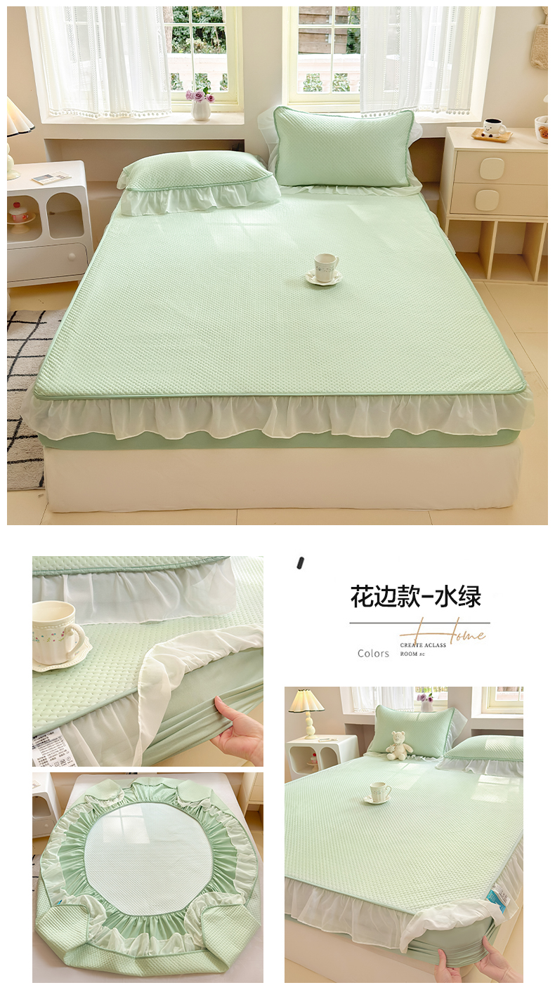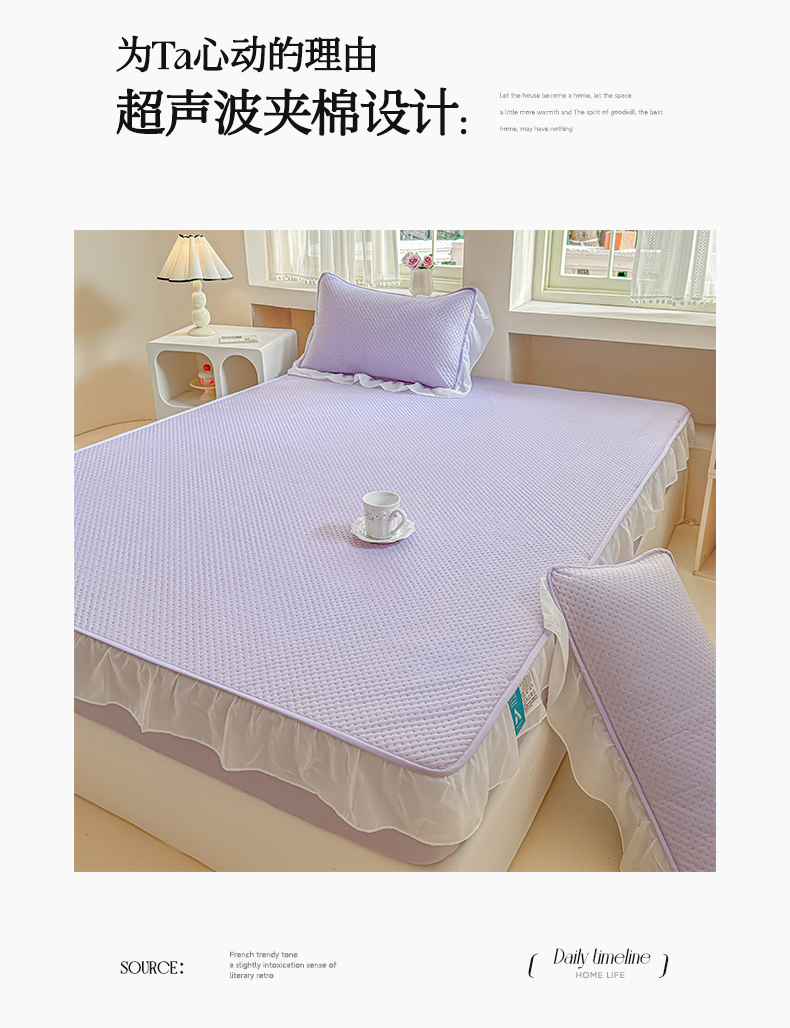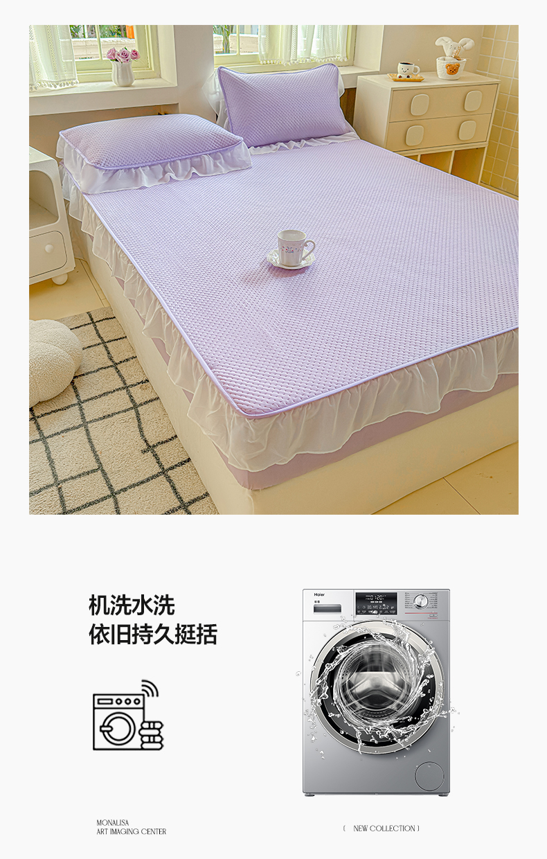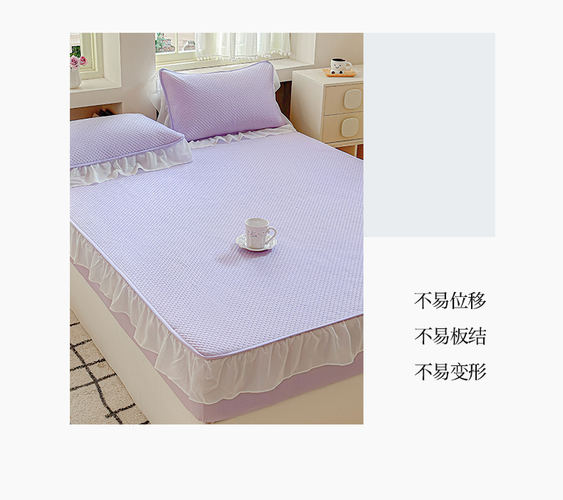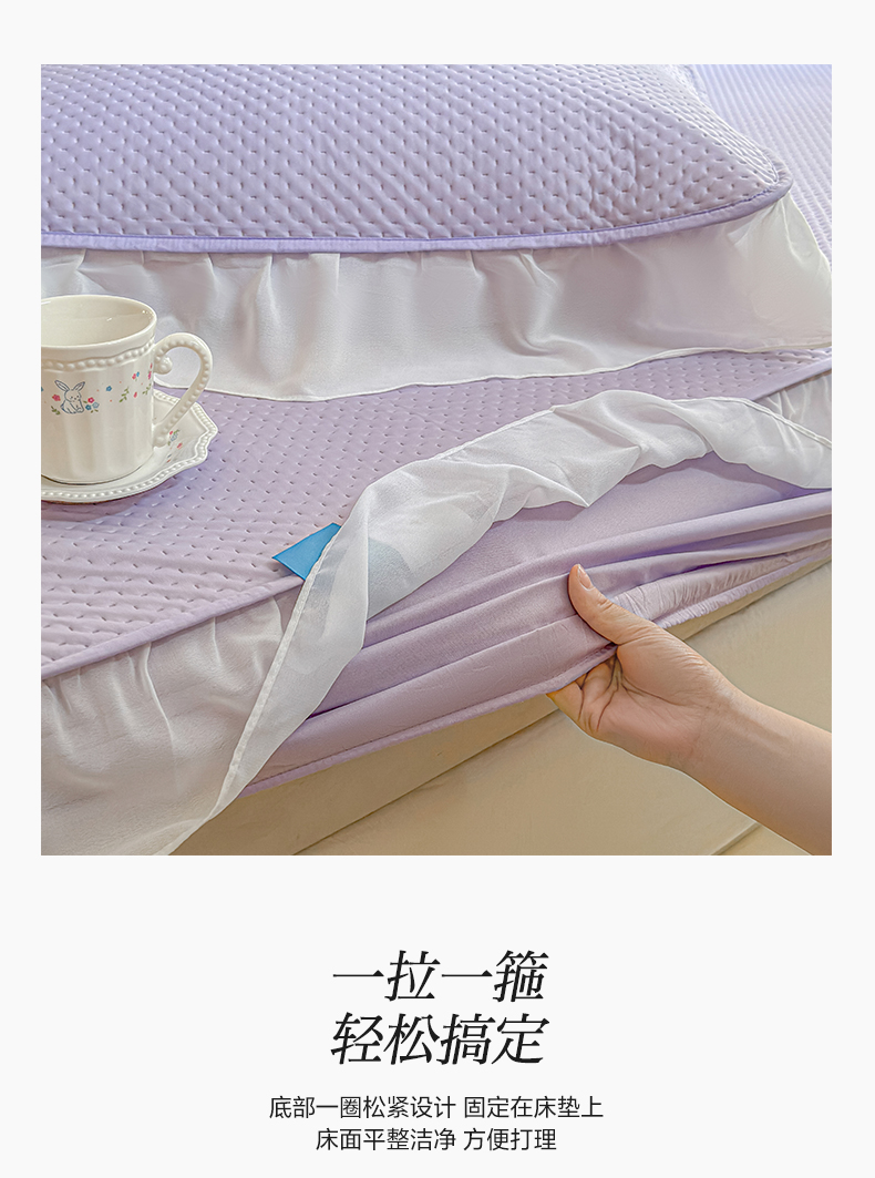 莱登卡奴 2025新款A类云母凉感丝豆豆被夏被凉席系列-花边凉席床笠款 花边款-优雅紫