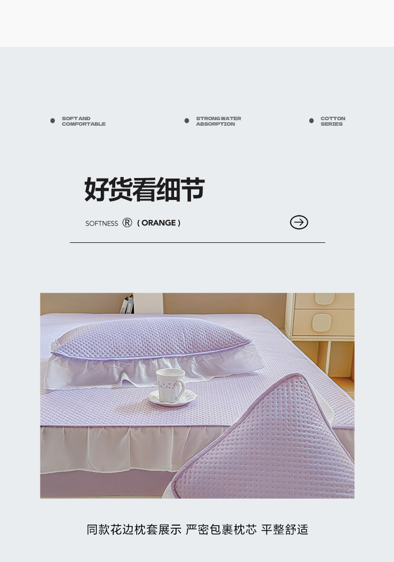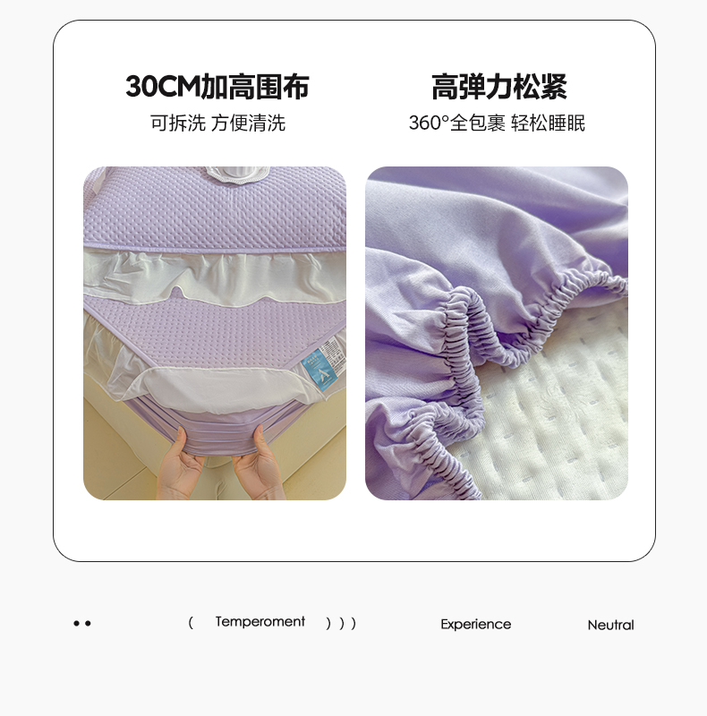 商品名称:莱登卡奴 2025新款A类云母凉感丝豆豆被夏被凉席系列-花边凉席床笠款 花边款-优雅紫