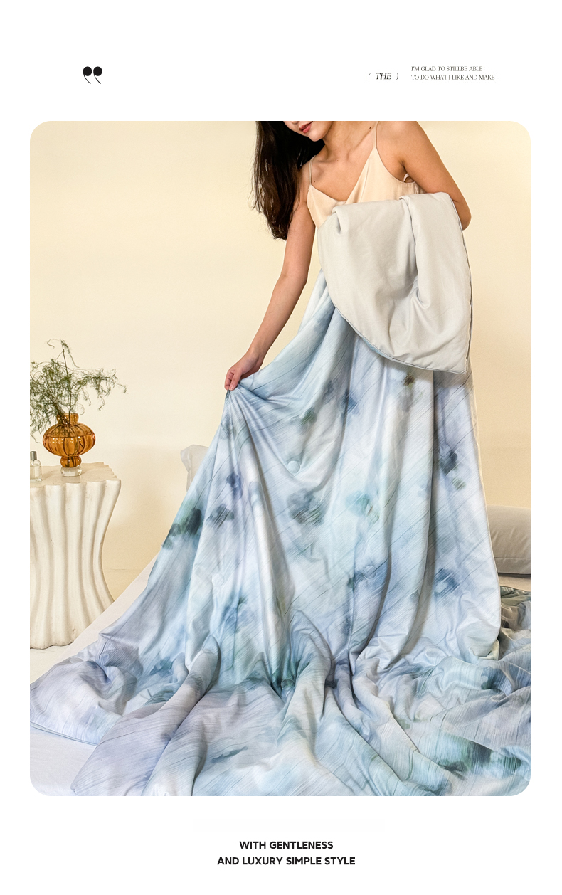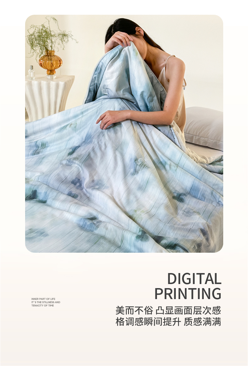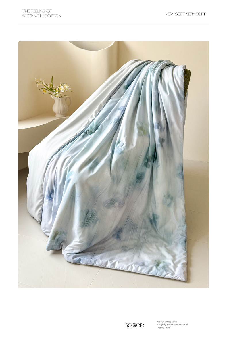 2025新款仿色织提花数码印花轻奢风水洗棉夏被 琉璃雨-蓝