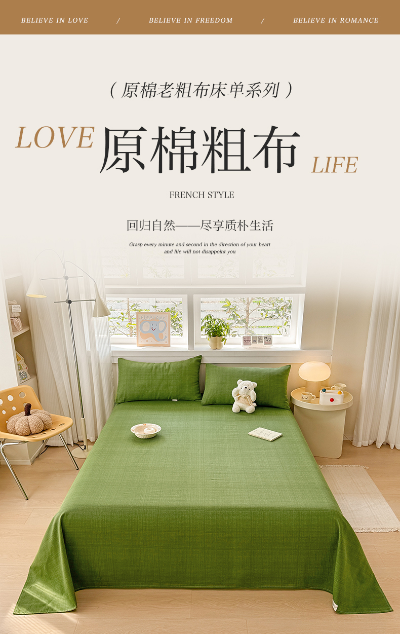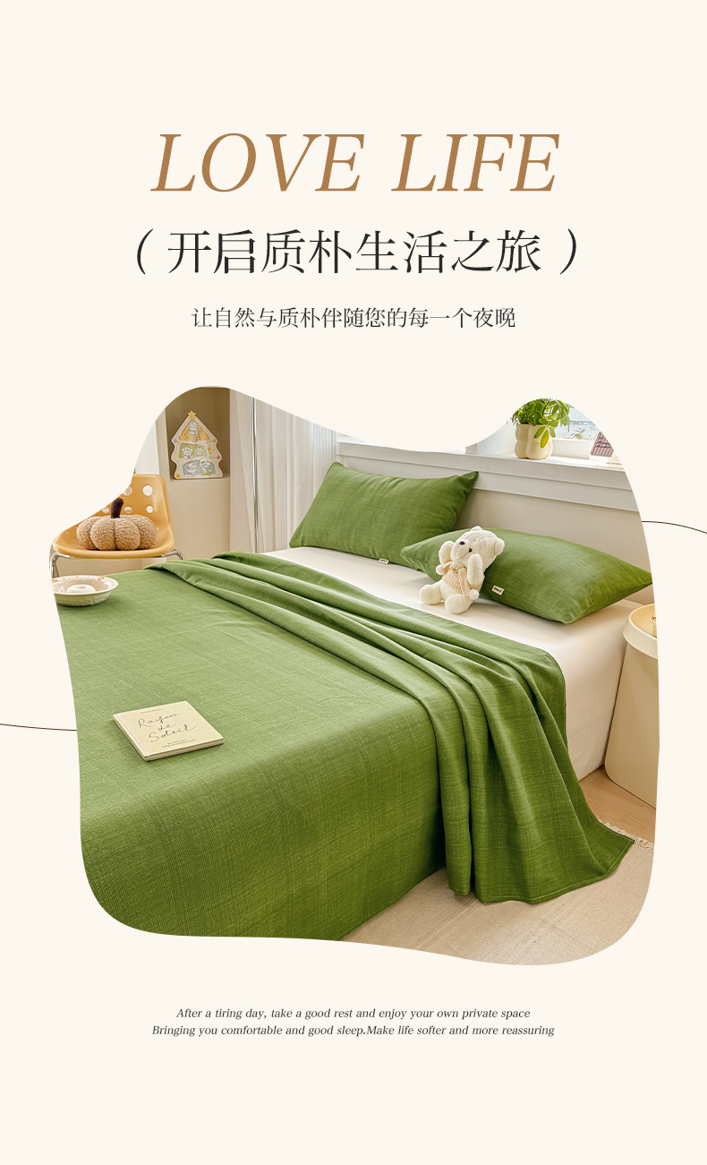 当前位置: 91家纺网 > 商品网购 > 床品套件 > 三件套 > 博弈家纺 2025新款亲肤舒适原棉老粗布床单凉席三件套系列 嫩绿