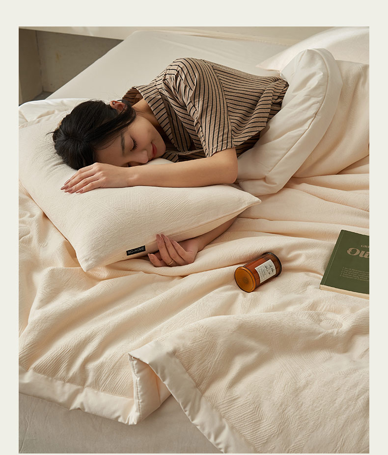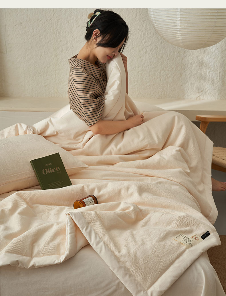 • 91家纺网 家纺一手货源 找家纺 寐绸家纺 2025新款纯棉水洗棉三层提花大豆纤维夏被四件套 三层纱树纹夏被-暗灰