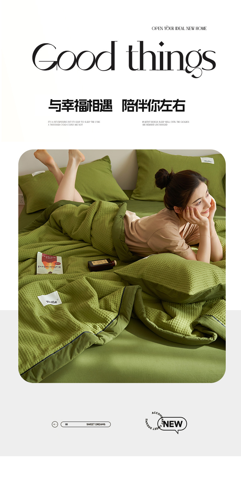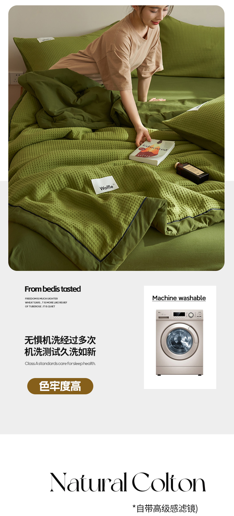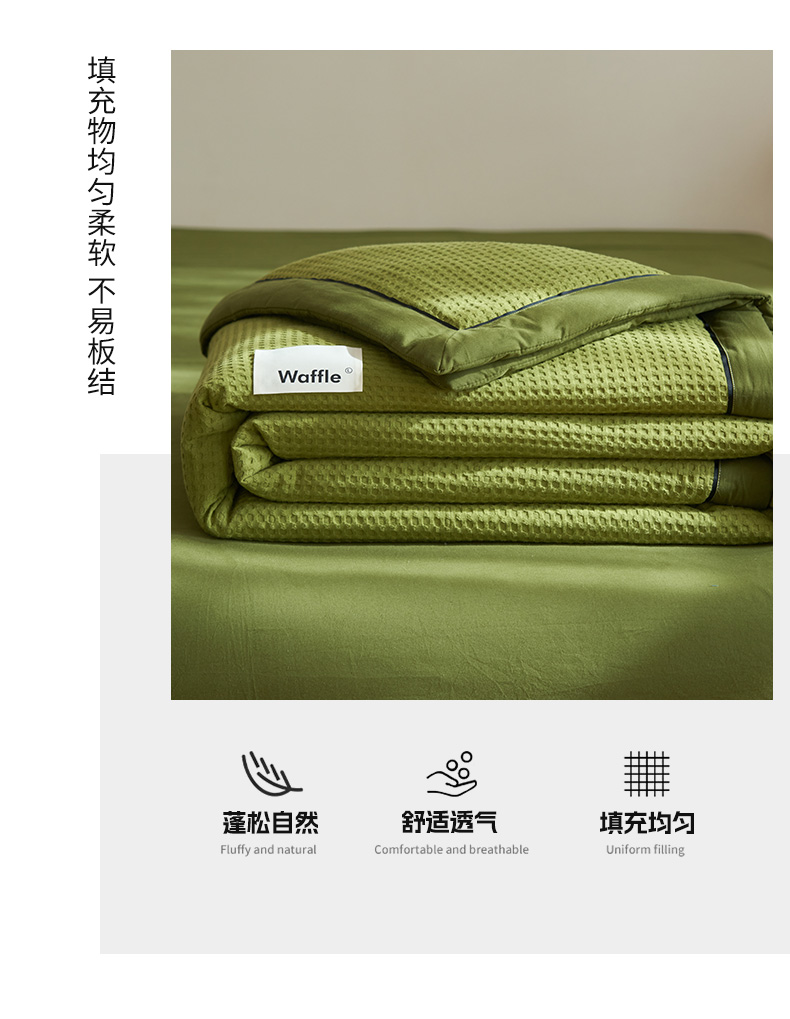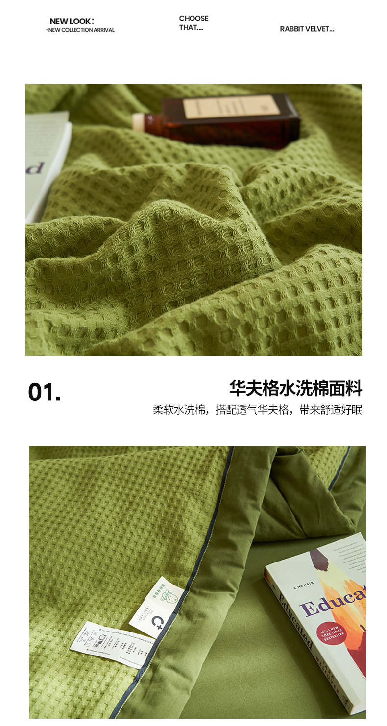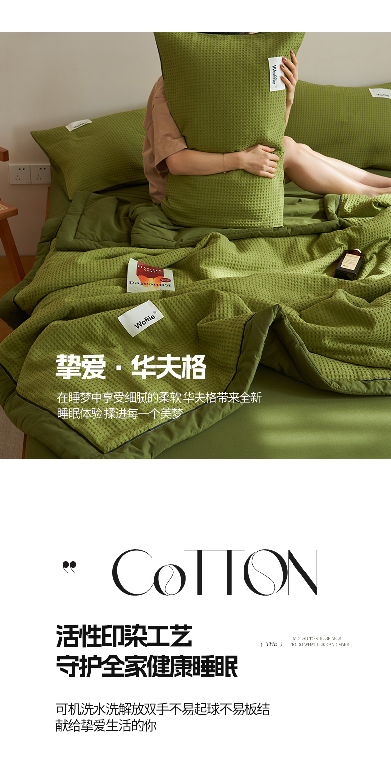 • 91家纺网 家纺一手货源 找家纺 寐绸家纺 2025新款40支纯棉水洗棉华夫格北欧风新疆棉花夏被四件套 华夫格-橄榄绿