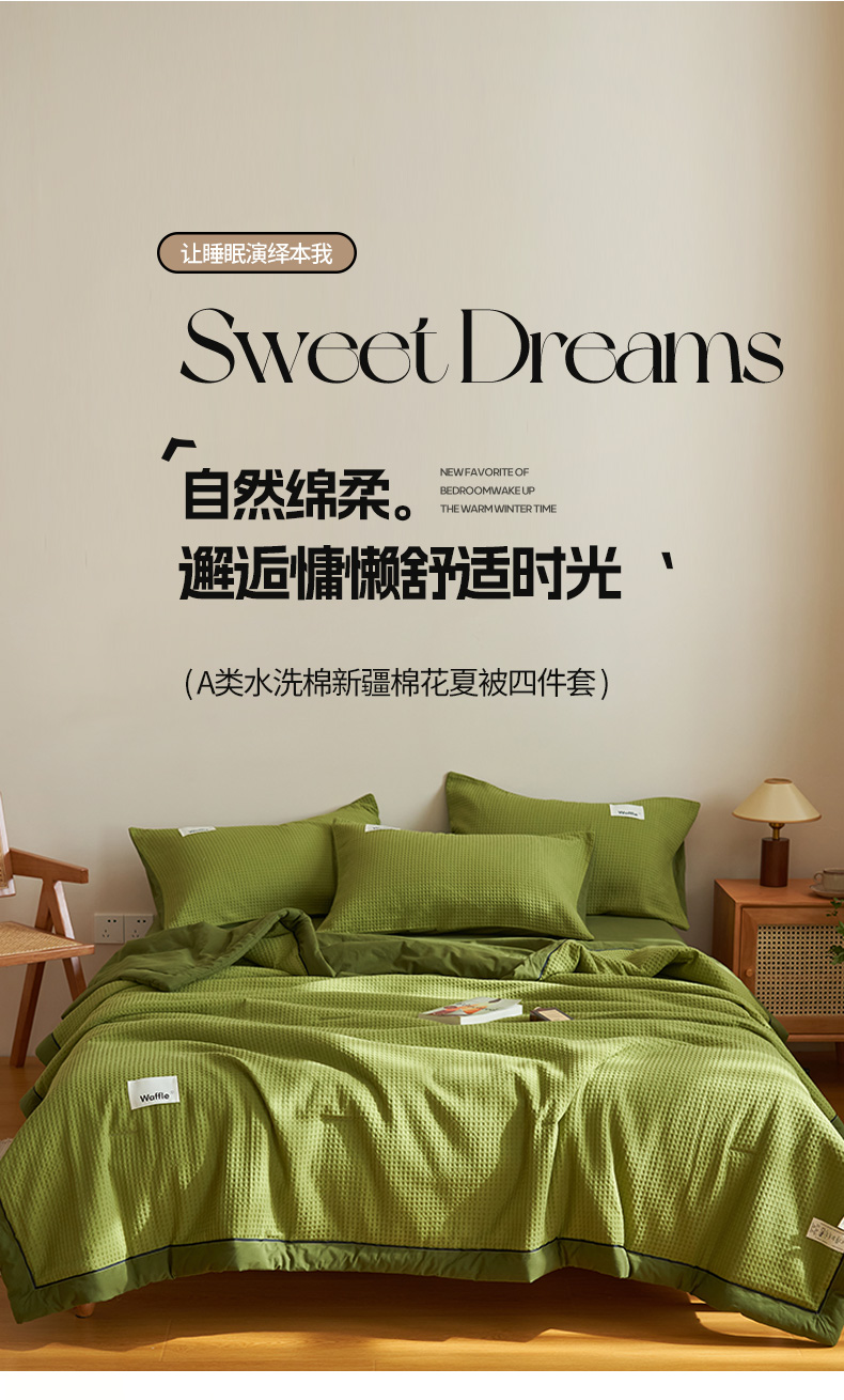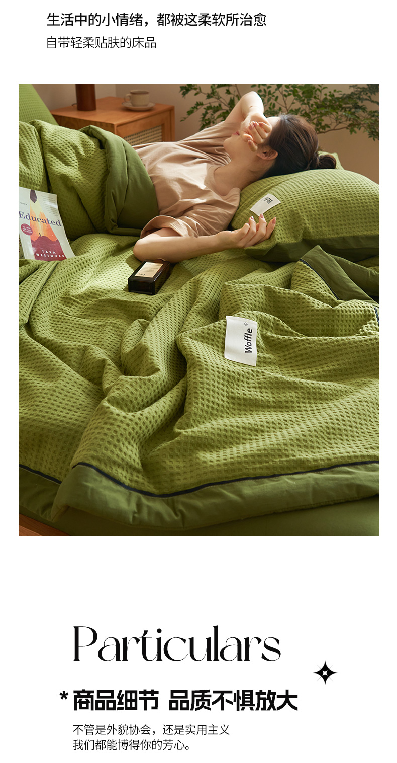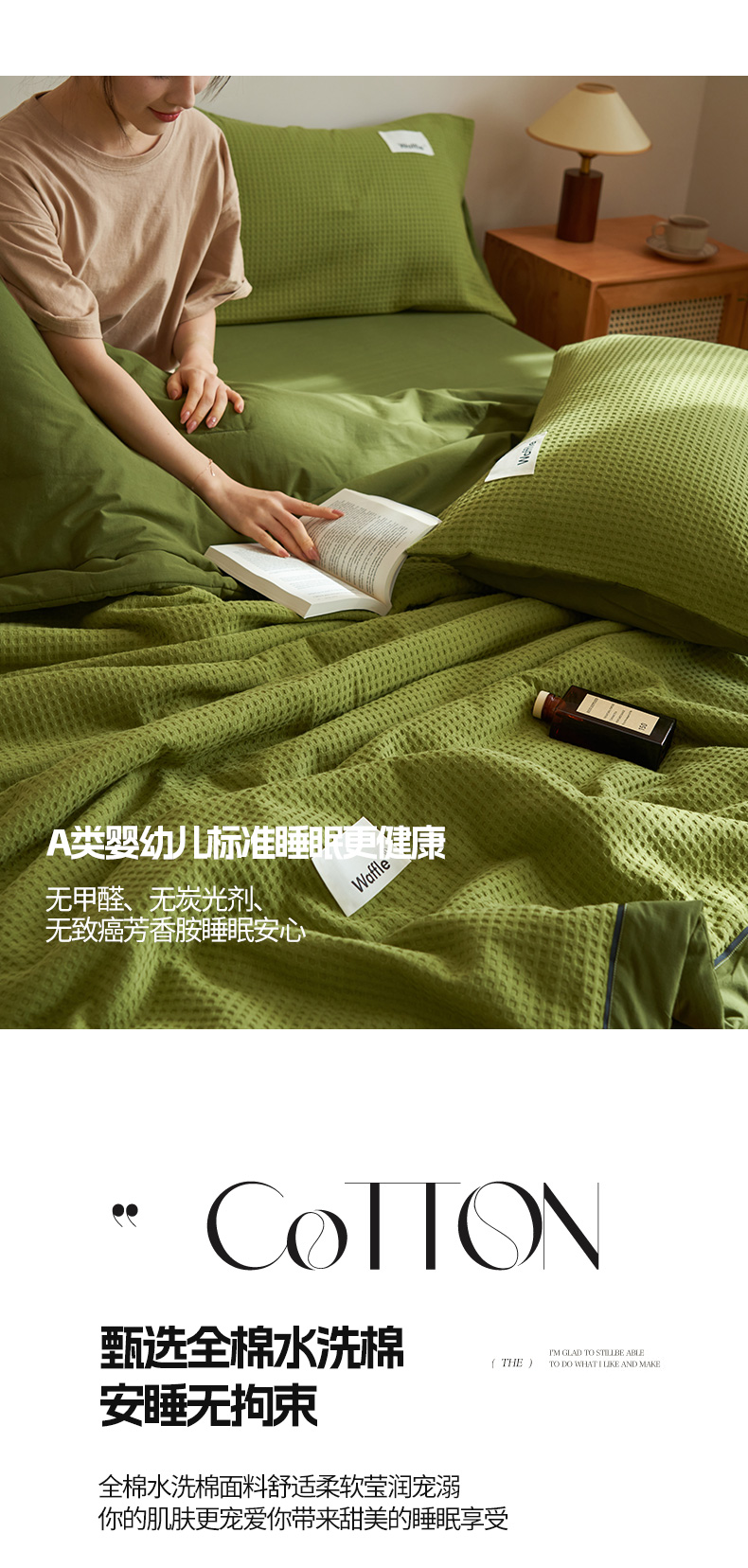 当前位置: 91家纺网 > 商品网购 > 被子 > 夏被 > 寐绸家纺 2025新款40支纯棉水洗棉华夫格北欧风新疆棉花夏被四件套 华夫格-橄榄绿