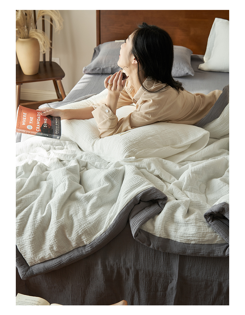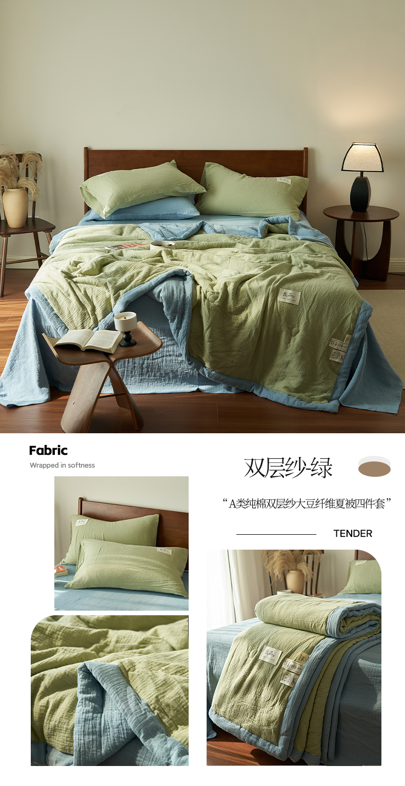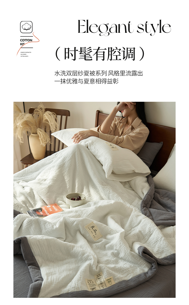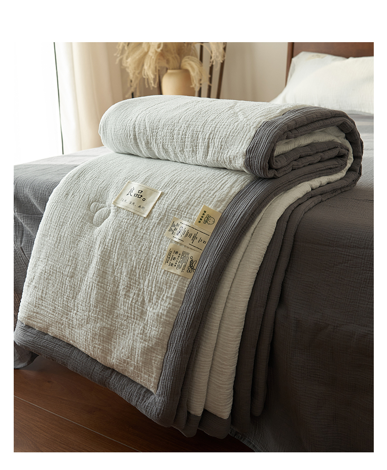 • 91家纺网 家纺一手货源 找家纺 寐绸家纺 2025新款纯棉双层纱大豆纤维夏被四件套 双层纱-白+灰