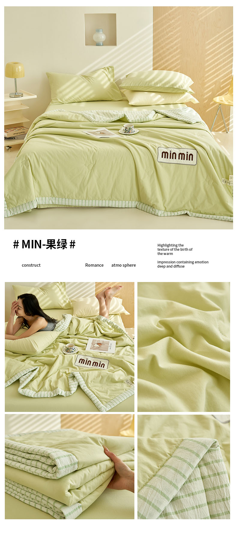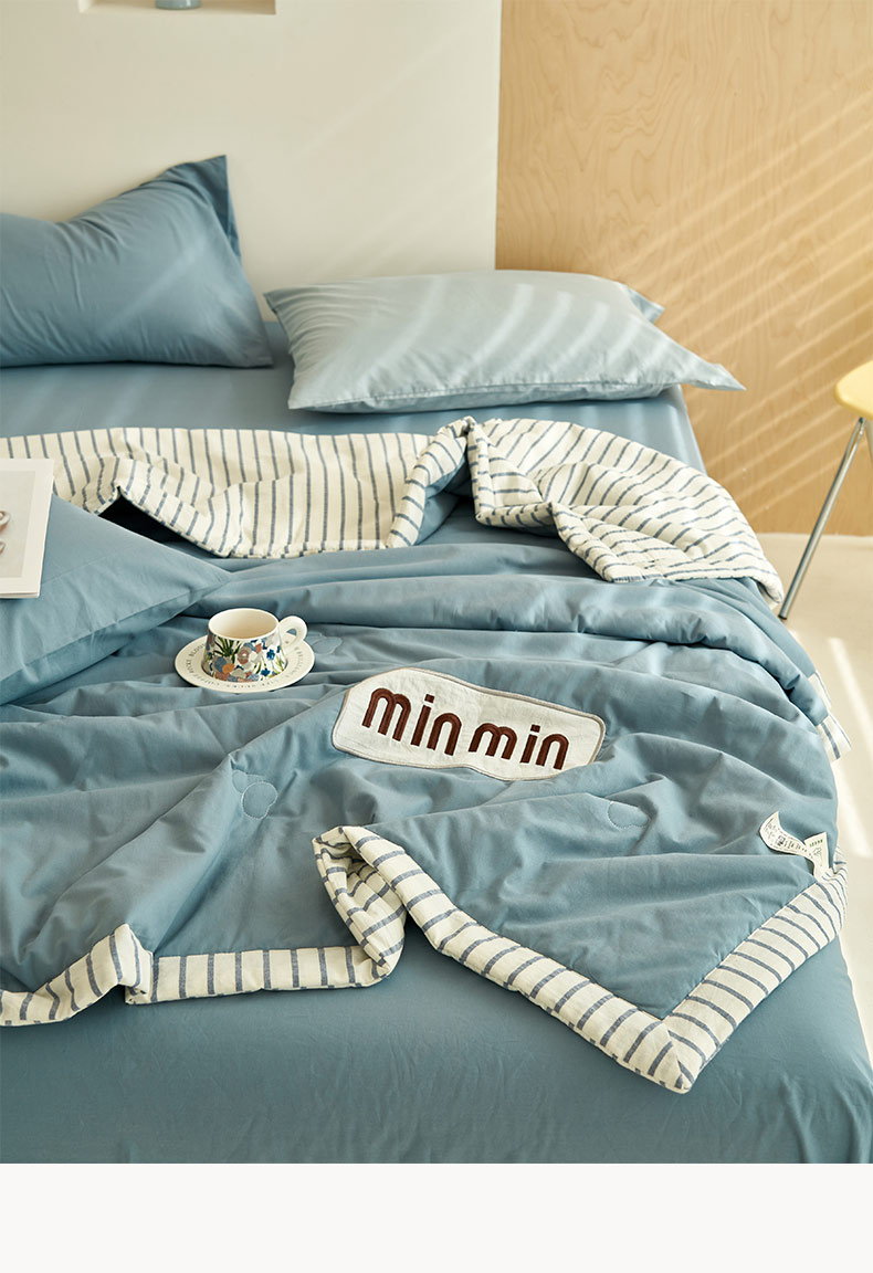 当前位置: 91家纺网 > 商品网购 > 被子 > 夏被 > 寐绸家纺 2025新款纯棉水洗棉min绣花竖条边大豆纤维夏被四件套 MIN-宾利蓝