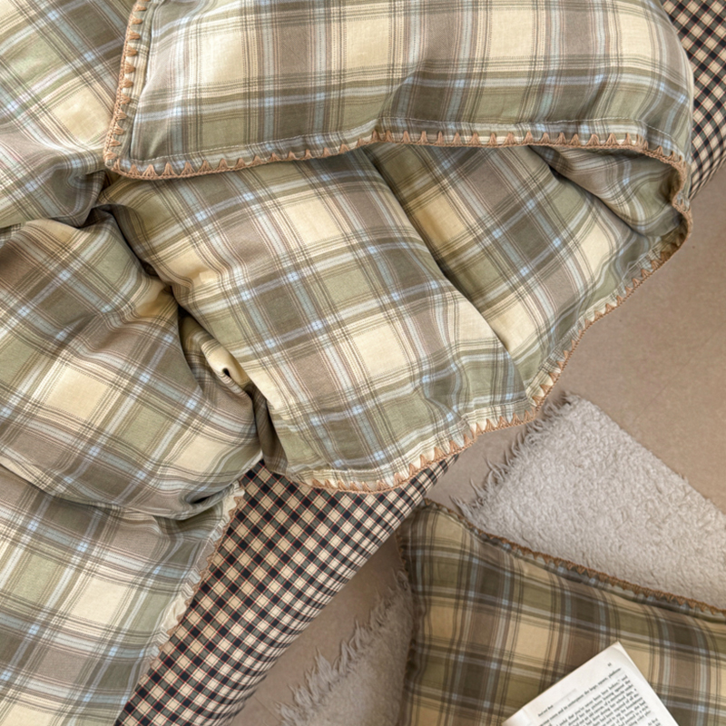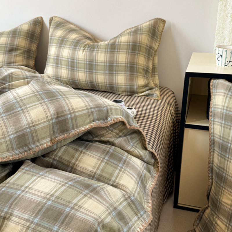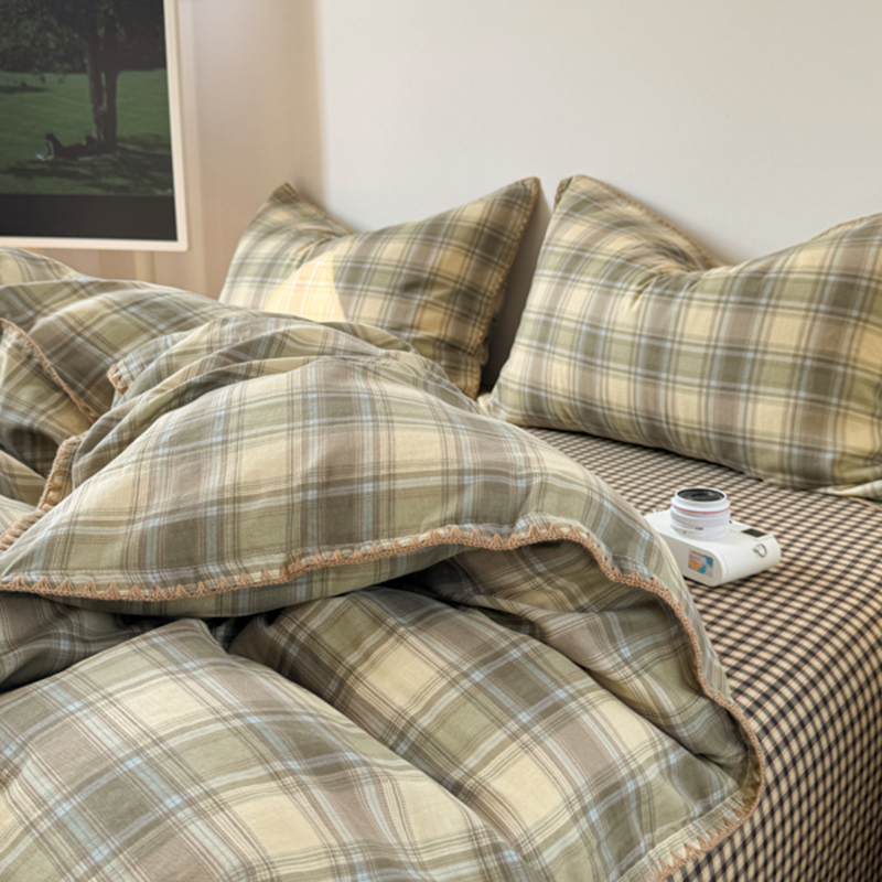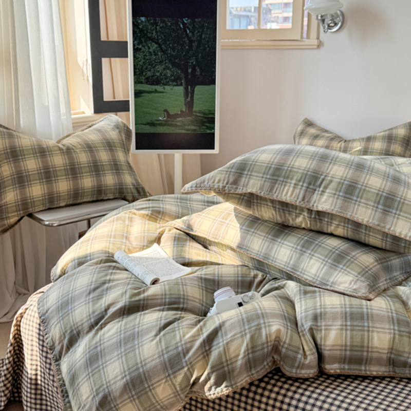 当前位置: 91家纺网 > 商品网购 > 床品套件 > 四件套 > 全棉普通四件套 > 金丝鸟家纺 2025新款全棉双层纱贝壳边四件套格子系列 轨迹绿格