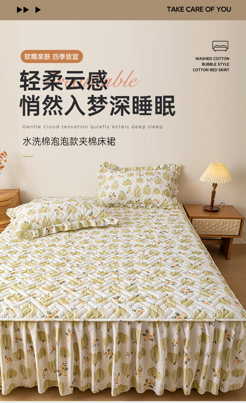当前位置: 91家纺网 > 商品网购 > 床品套件 > 三件套 > 屹成家纺 2025新款水洗泡泡棉床裙 小南瓜