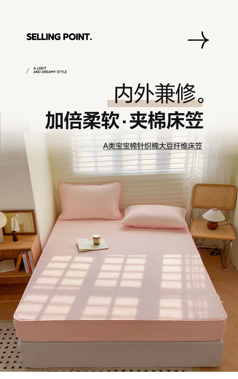 商品名称:莱登卡奴 2025新款A类宝宝棉针织棉大豆夹棉床笠 夹棉款-粉色