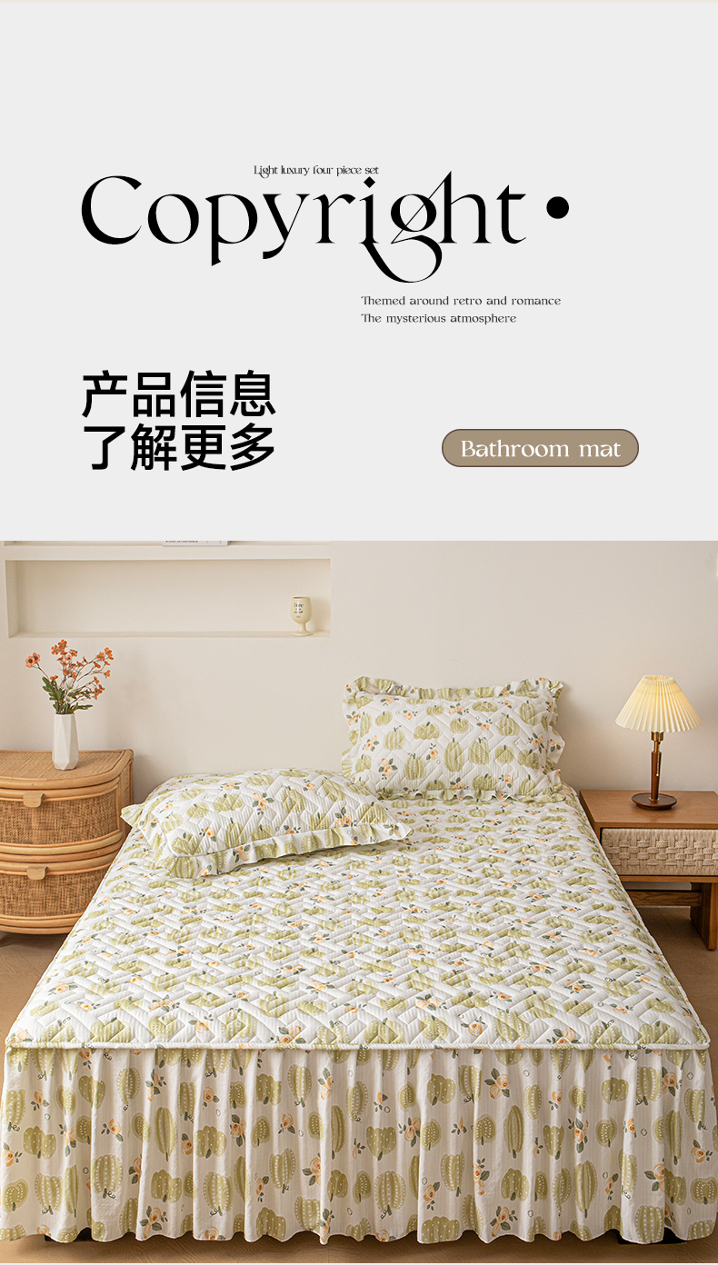 当前位置: 91家纺网 > 商品网购 > 床品套件 > 三件套 > 屹成家纺 2025新款水洗泡泡棉床裙三件套 小南瓜