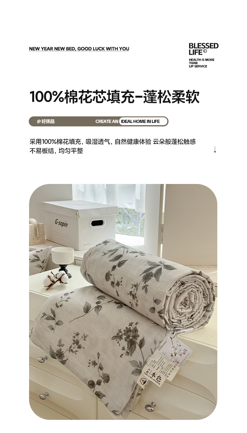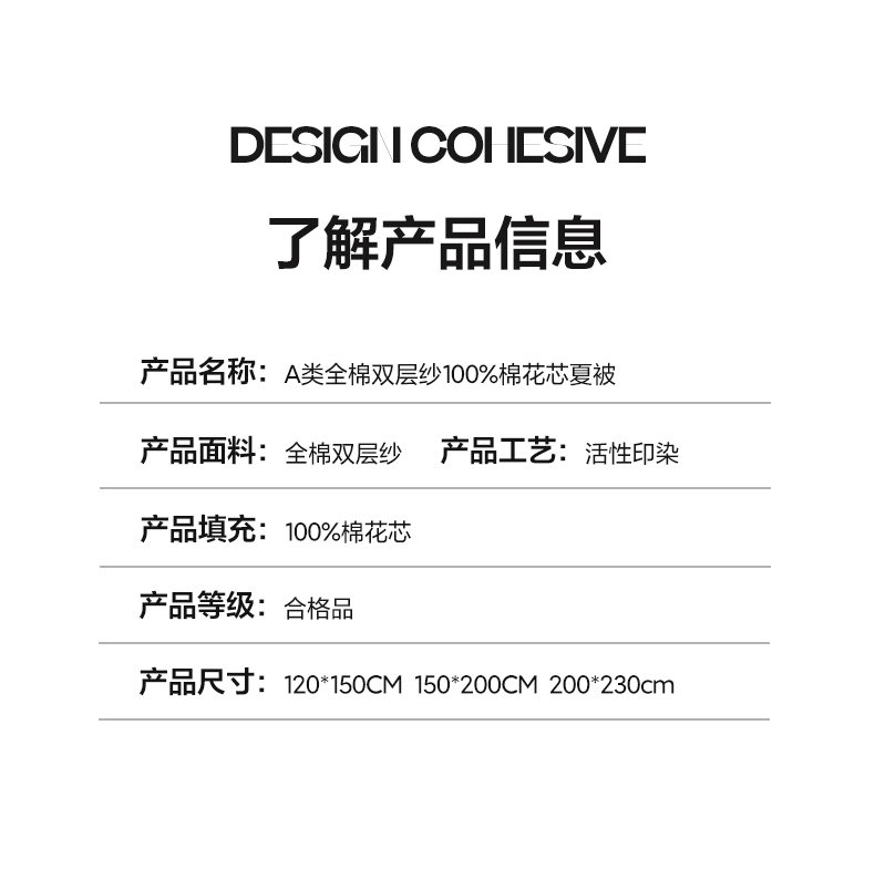 商品名称:(总)莱登卡奴 2025新款A类全棉双层纱100%棉花芯夏被