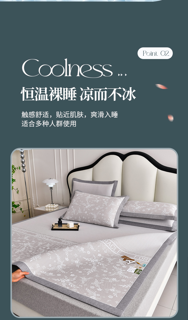 商品名称:小牛席业 2025新款半定位小提花凉感冰丝席系列凉席藤席冰藤双面席冰丝席竹席凉席空调席草席三件套 香槟