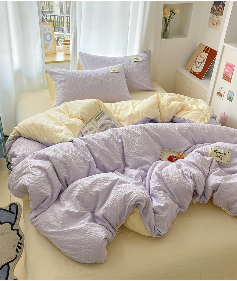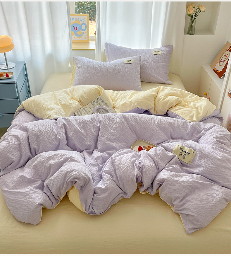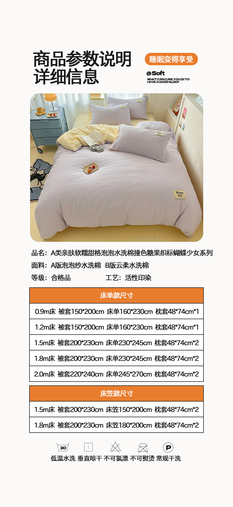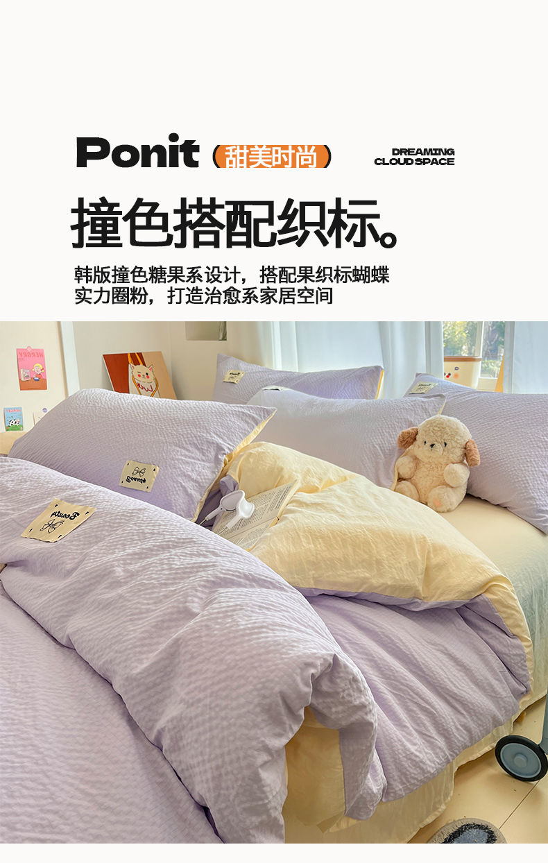 当前位置: 91家纺网 > 商品网购 > 床品套件 > 四件套 > 水洗棉四件套 > 桃心家居 2025新款A类韩系亲肤软糯甜格泡泡水洗棉撞色奶呼呼织标蝴蝶少女四件套 泡泡水洗棉-甜格紫黄
