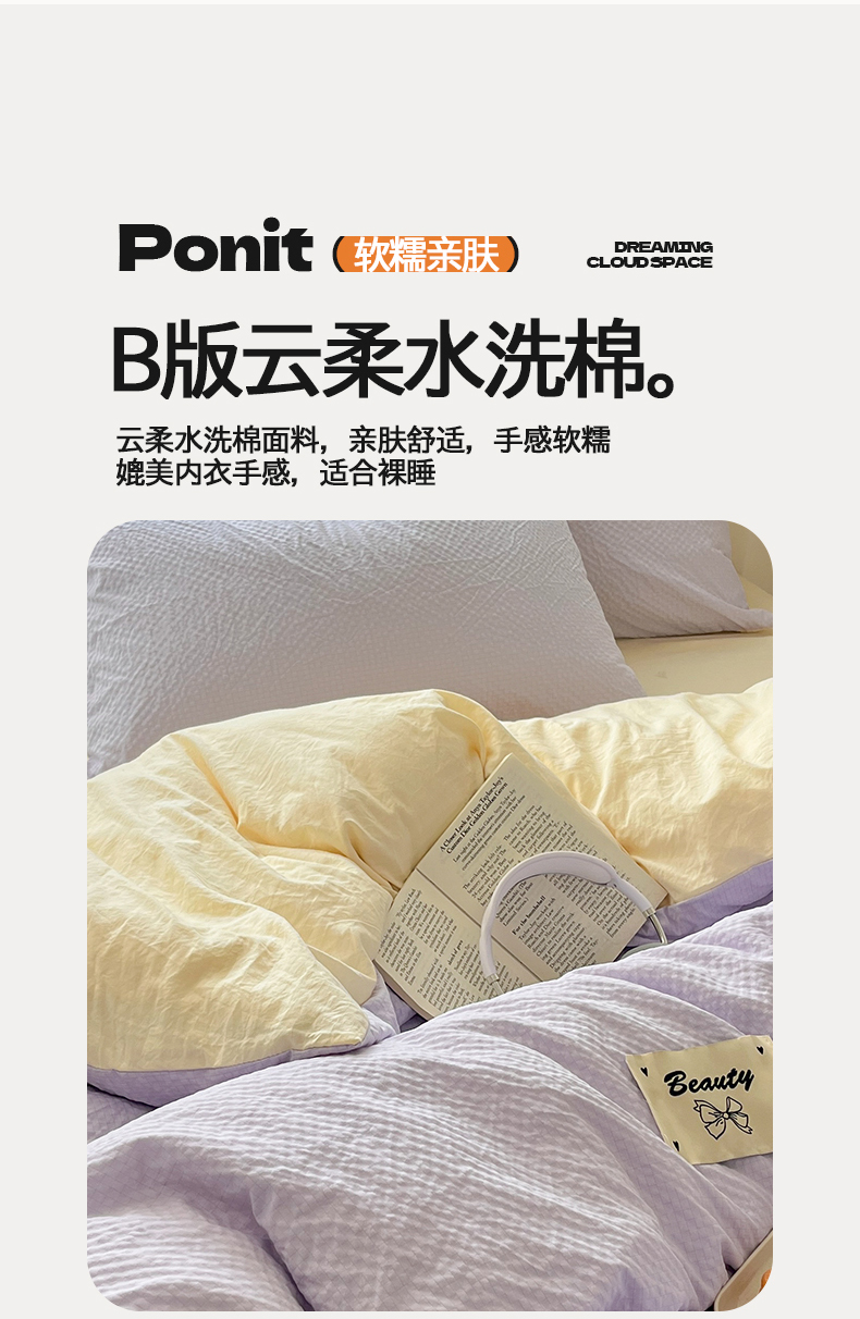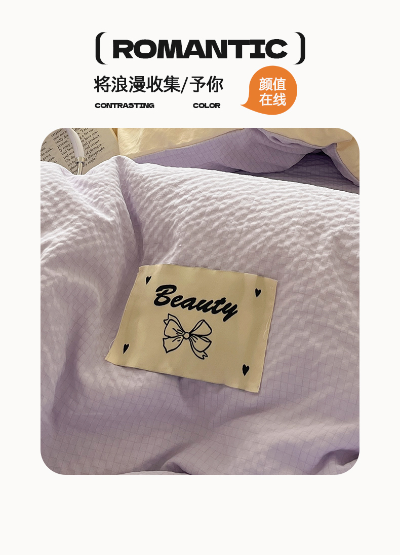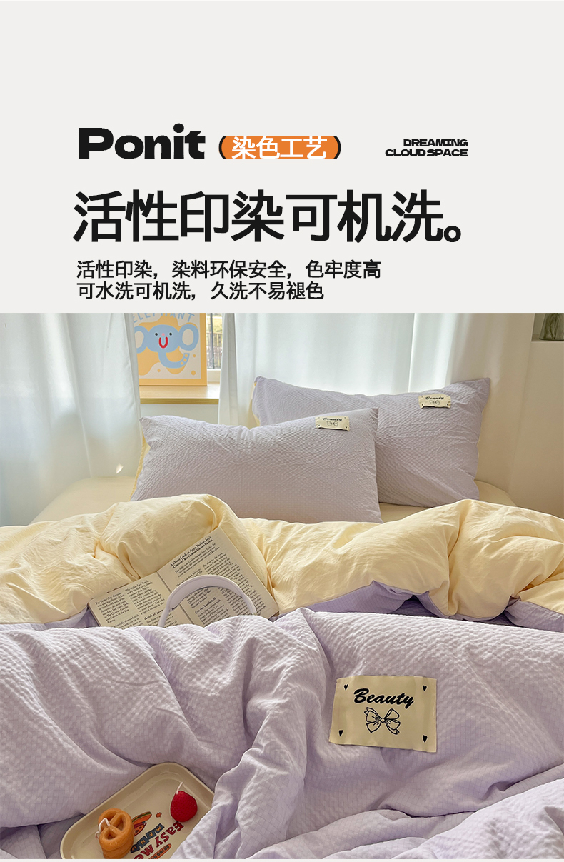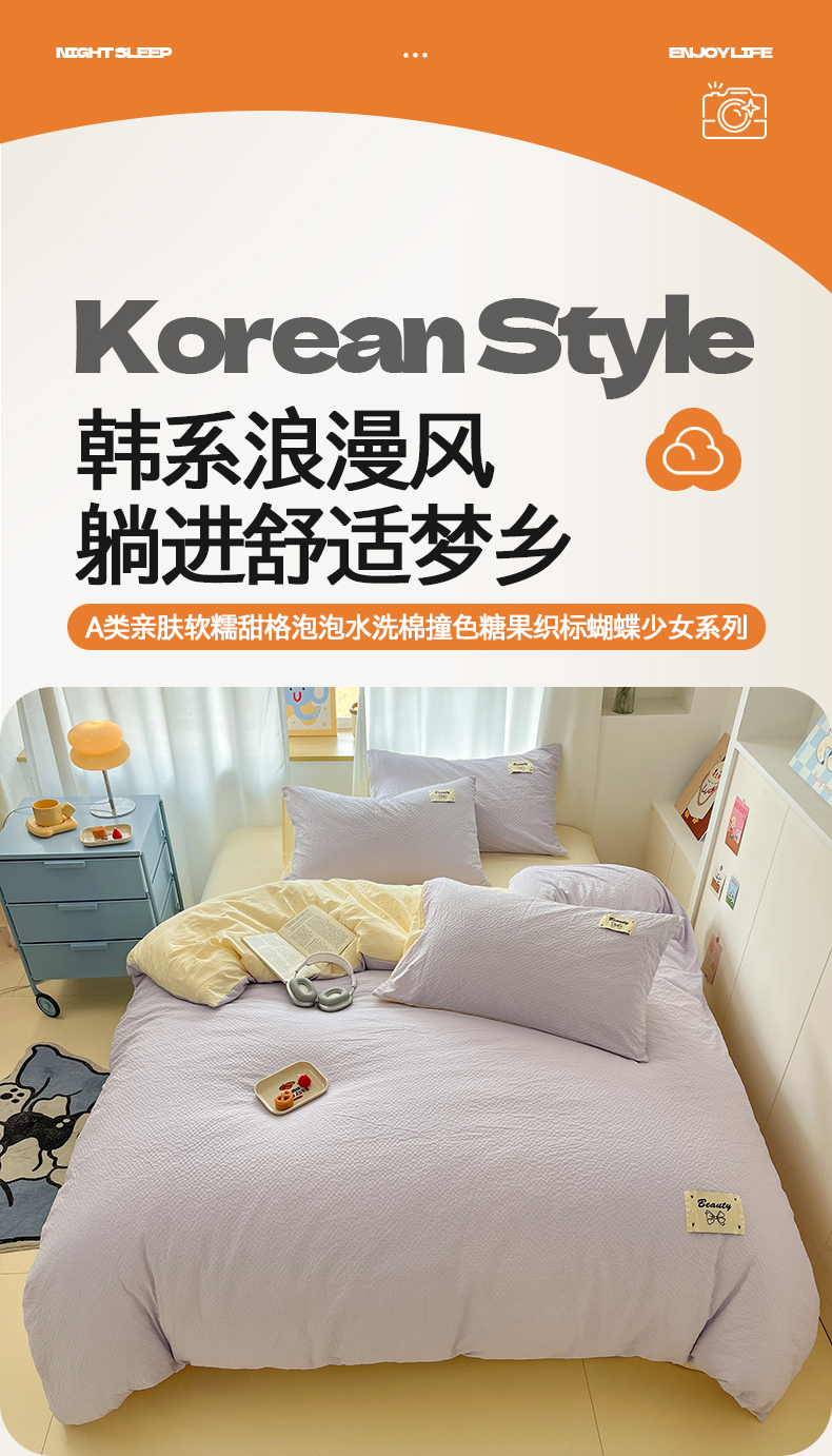 当前位置: 91家纺网 > 商品网购 > 床品套件 > 四件套 > 水洗棉四件套 > 桃心家居 2025新款A类韩系亲肤软糯甜格泡泡水洗棉撞色奶呼呼织标蝴蝶少女四件套 泡泡水洗棉-甜格紫黄