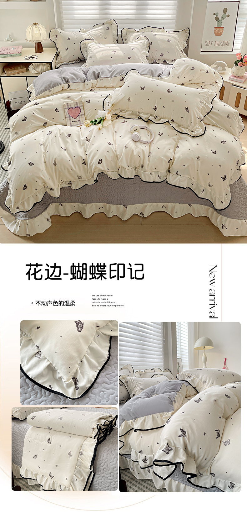 商品名称:富米莱(原臻工厂)2025新款A类针织双层纱赫本风床盖四件套蝴蝶 花边-蝴蝶印记
