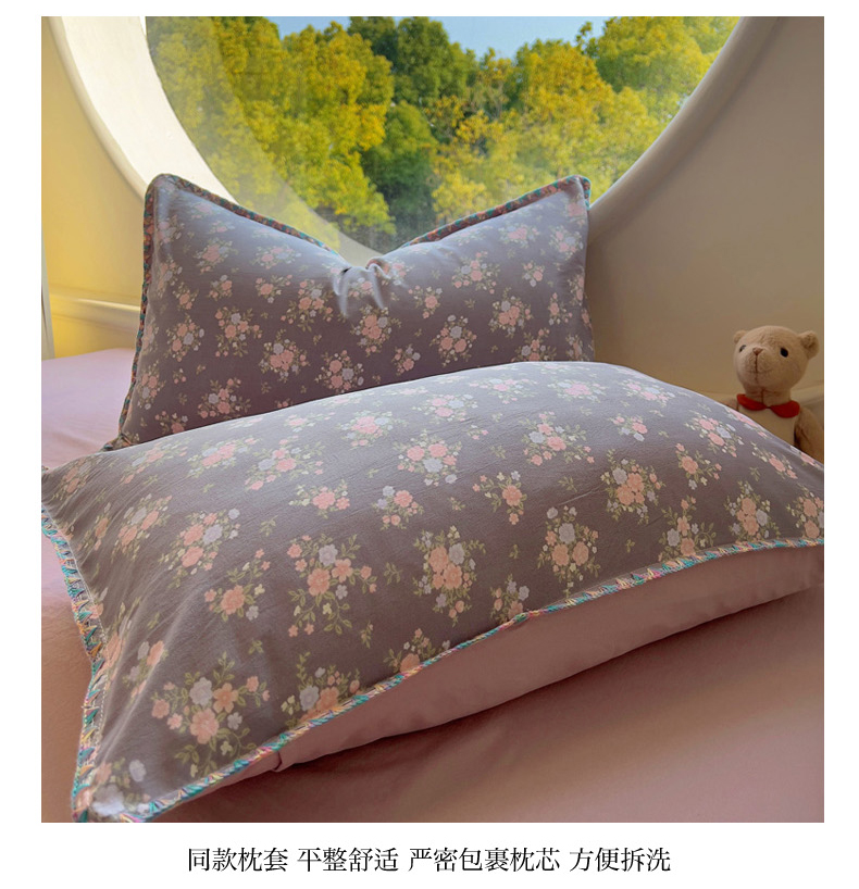 葡萄家 2025爆款高克重彩色三角针A类针织双层纱四件套 提供买家秀 茉福灰